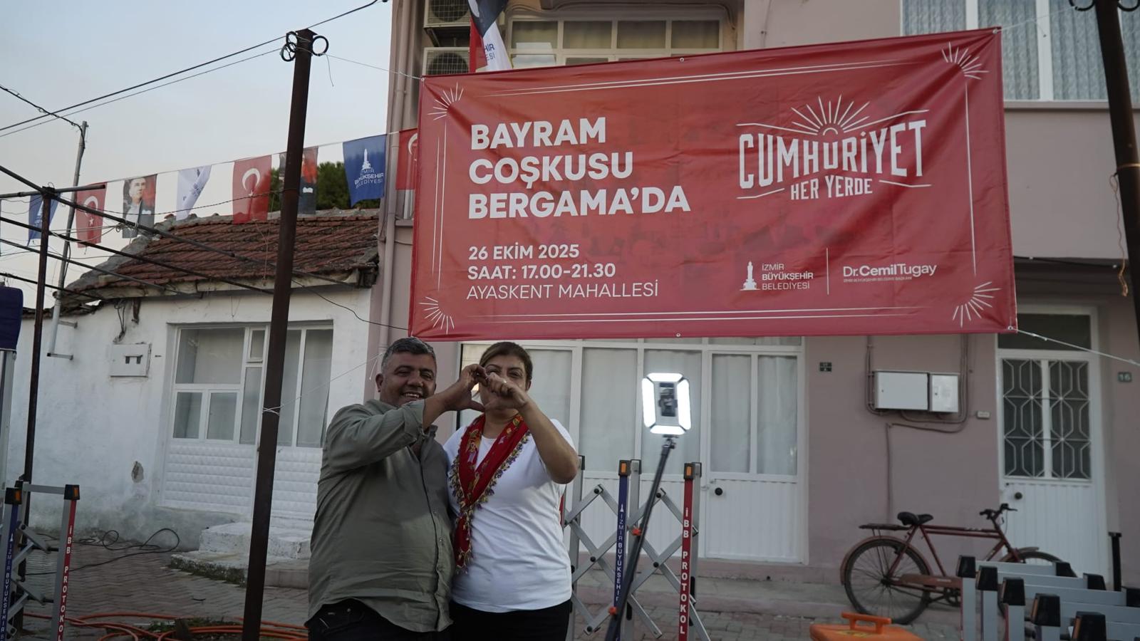 Cumhuriyet Bayramı, kentin dört bir yanında büyük bir coşkuyla kutlanmaya devam ediyor. İzmir Büyükşehir Belediyesi’nin “Cumhuriyet Her Yerde” etkinliklerinin son durağı Bergama Ayaskent Mahallesi oldu. Kutlamalara Bergama Belediye Başkanı Prof. Dr. Tanju Çelik de katılarak konuşma yaptı.