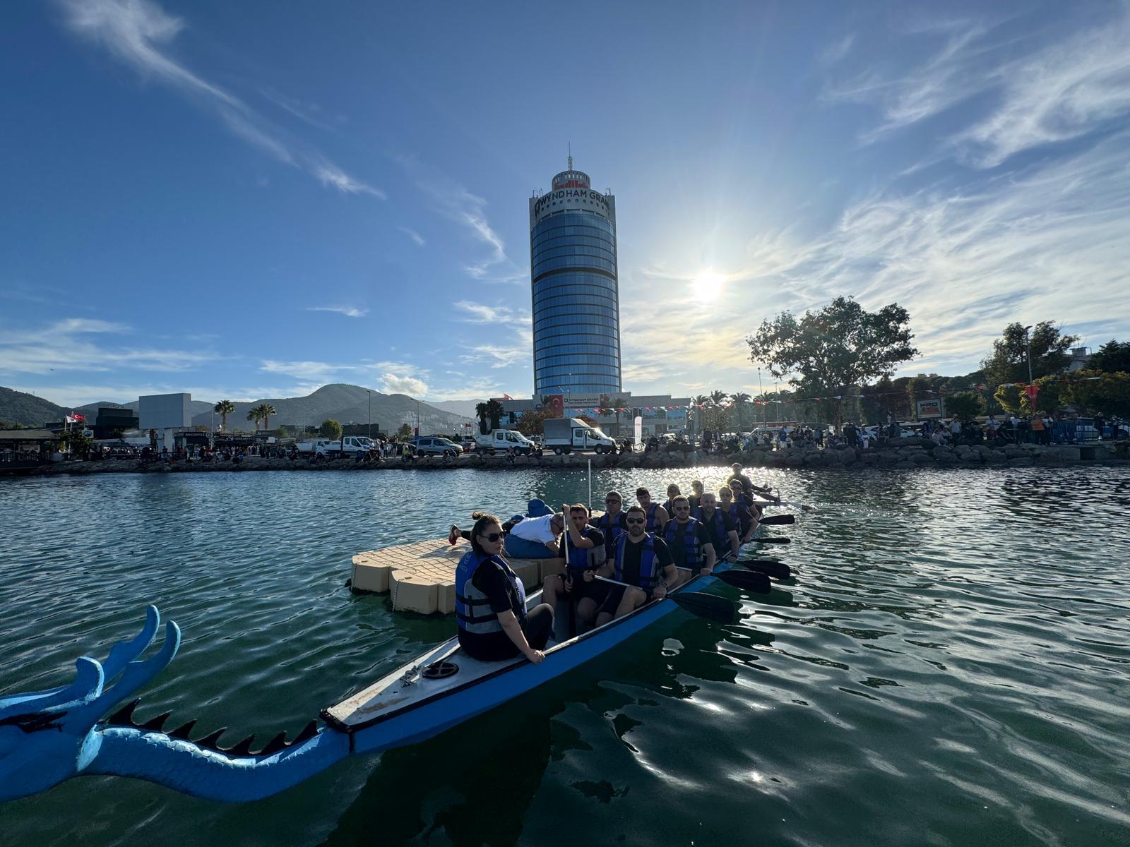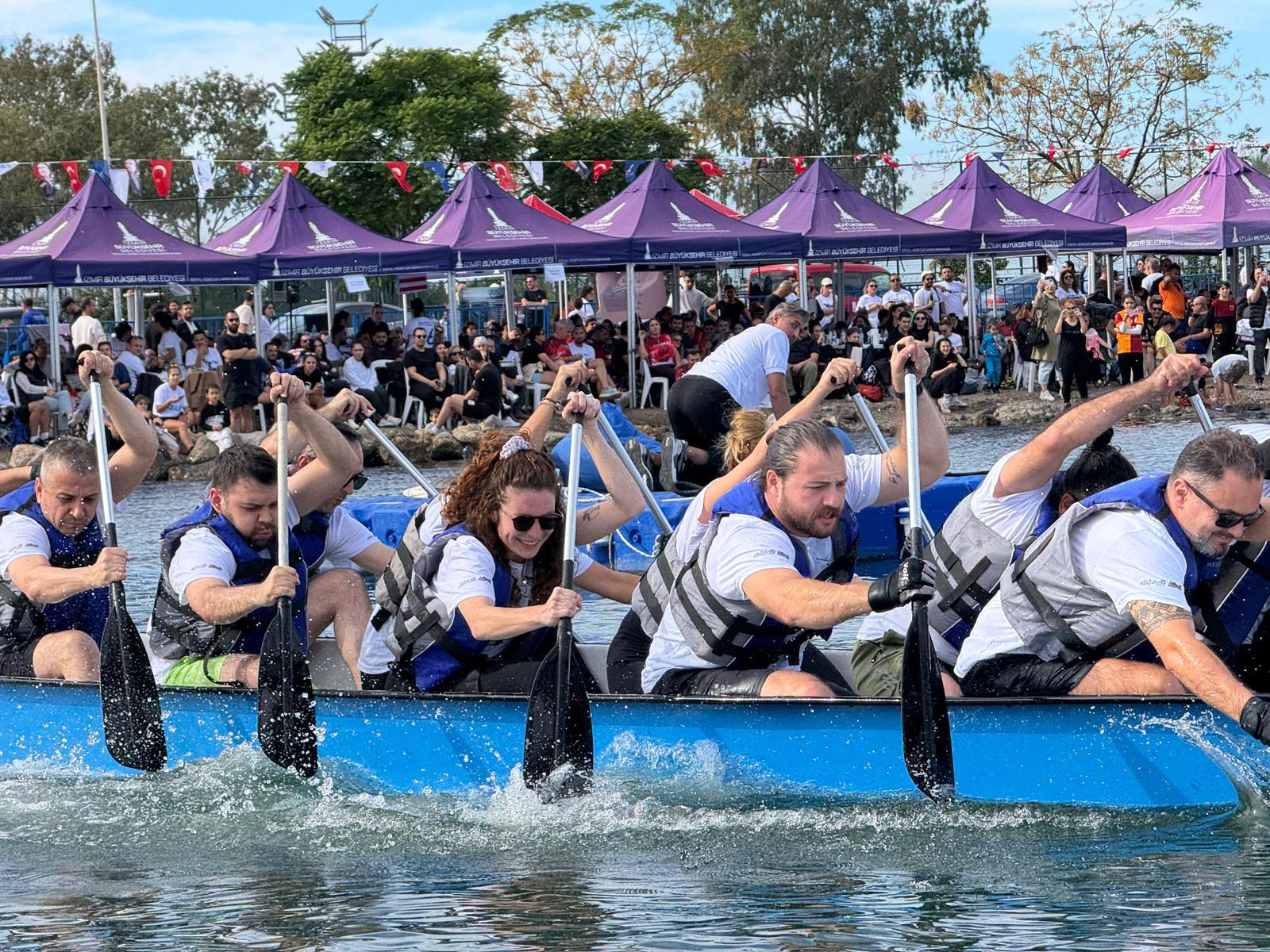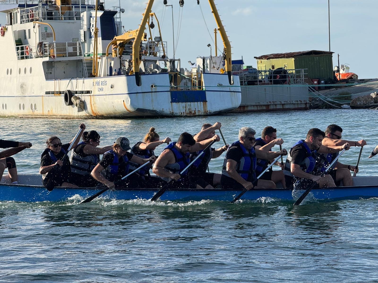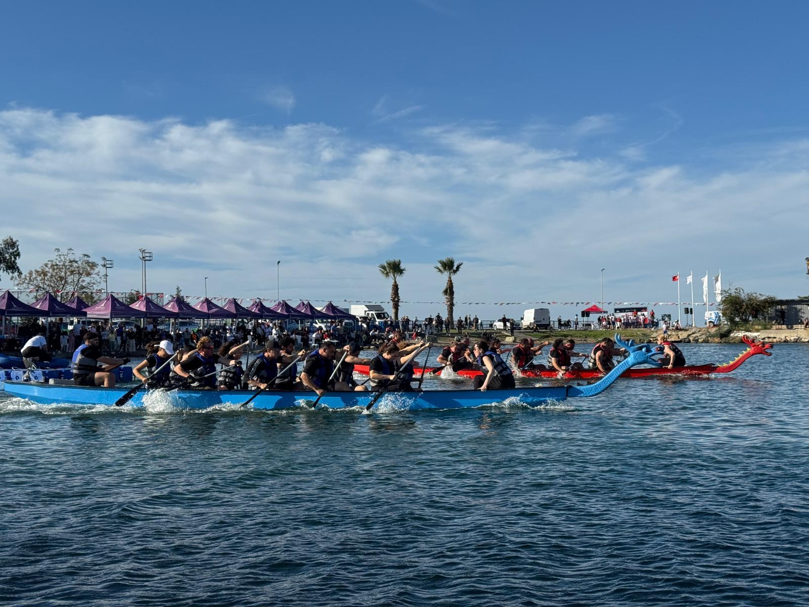 İzmir Büyükşehir Belediyesi tarafından bu yıl üçüncüsü düzenlenen Dragon Tekne Yarışması, renkli görüntülere sahne oldu. Belediye çatısı altındaki birimlerin İzmir Körfezi’nde kürek çektiği yarış, izleyenlere de heyecanlı anlar yaşattı. 28 takımın katıldığı yarış, kıyasıya rekabetin yanı sıra centilmenlik ruhunun da en güzel örneklerine sahne oldu. Balçova İnciraltı sahilinde yerini alan takımlar 250 metrelik parkurda, kazanmak için kürek çekti.