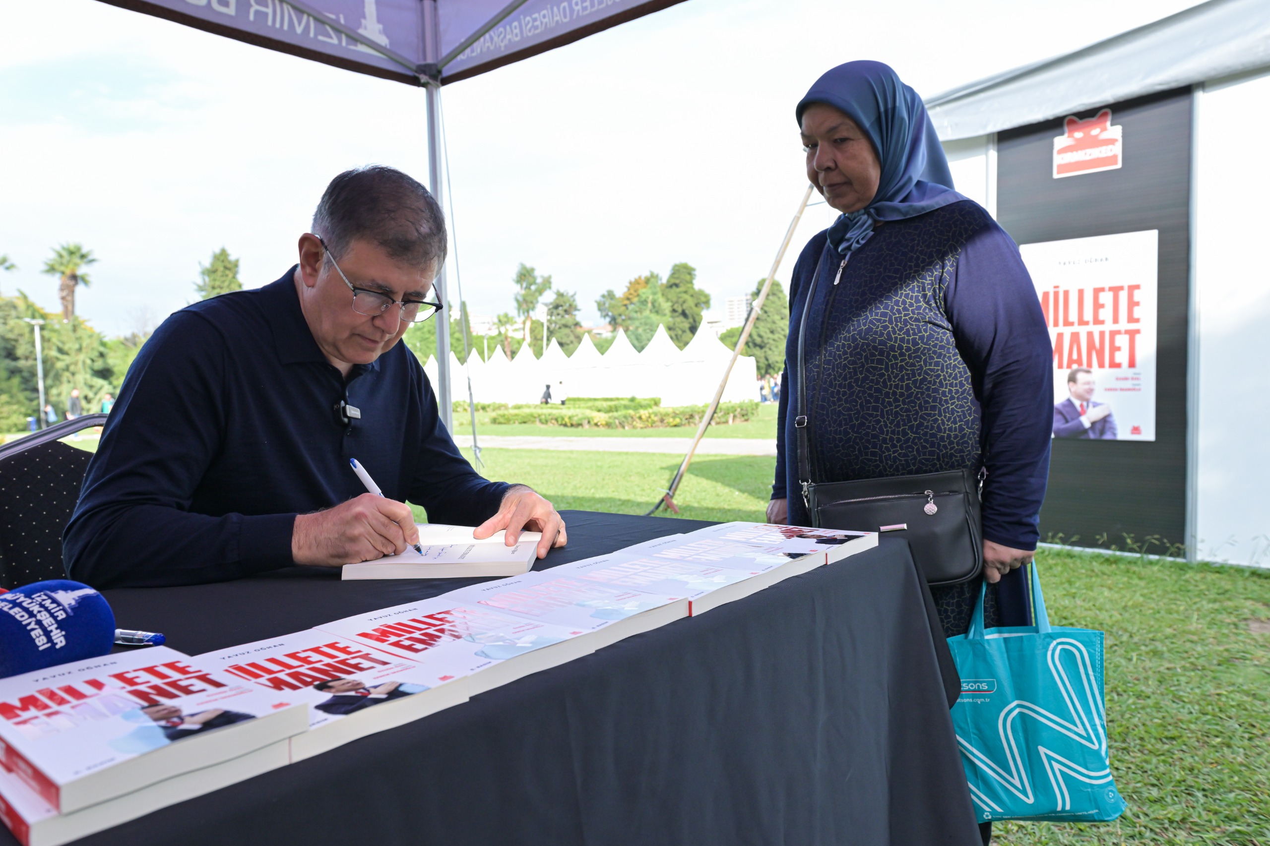 Her yaştan kitapsever, gösterdikleri yoğun ilgiyle İzmir’in kültür kenti kimliğini bir kez daha ortaya koydu. Fuar süresince stantları ziyaret eden İzmir Büyükşehir Belediye Başkanı Dr. Cemil Tugay, yayınevleriyle ve yazarlarla bir araya gelerek kitapseverlere kitap armağan etti. Başkan Tugay, İZKİTAP’ta, gazeteci Yavuz Oğhan’ın tutuklu İstanbul Büyükşehir Belediye Başkanı Ekrem İmamoğlu’nun yaşamı ve mücadelesini kaleme aldığı “Millete Emanet” kitabını da onun adına imzaladı. Düzenlenen imza gününe İzmirliler yoğun ilgi gösterirken, Başkan Tugay, İmamoğlu’na destek mesajlarını kabul etti.