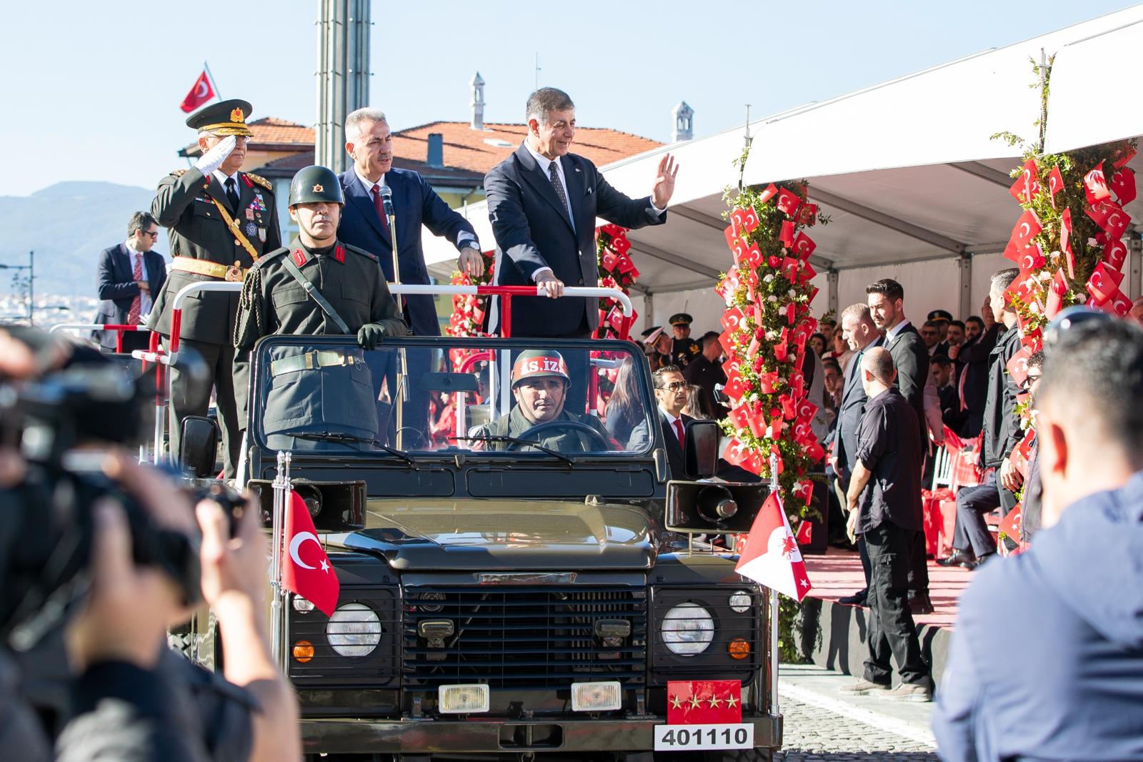 Konuşmaların ve gösterilerin ardından geçit töreni düzenlendi. Ellerinde Türk bayrakları taşıyan öğrenciler, geçit törenin başında yer aldı. Ardından sırasıyla meslek odaları, dernekler, muhtarlar vakıflar gibi çok sayıda kurum geçit törenine katıldı. Tören, İzmir Büyükşehir Belediyesi Zabıtası ve İtfaiyesi ile askeri birliklerin geçit töreni ile son erdi.
