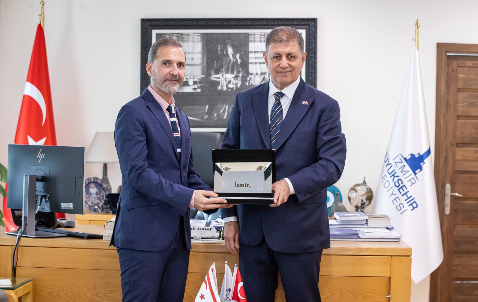 İzmir Büyükşehir Belediye Başkanı Dr. Cemil Tugay, Kuzey Kıbrıs Türk Cumhuriyeti Başkonsolosu Mustafa Davulcu’yu ağırladı. İzmir ve KKTC’nin belediyeleri ile ilişkilerin gelişmesi gerektiğini kaydeden Başkan Dr. Cemil Tugay, “İzmir Büyükşehir Belediyesi olarak Kıbrıs’ın bütün şehirleri ve belediyelerine elimizde ne varsa sunmaya hazırız.” dedi.