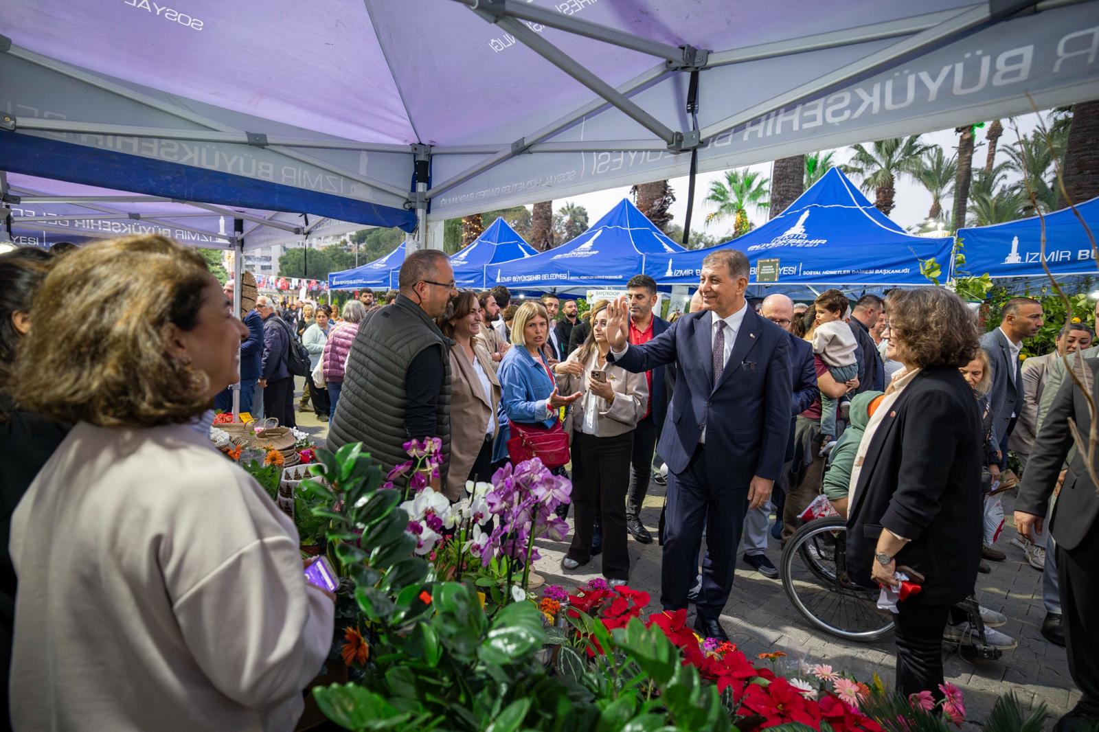 Konuşmaların ardından Başkan Tugay katılımcılarla birlikte renk renk çiçekerin yer aldığı stantları gezerek yurttaşlarla sohbet etti ve hatıra fotoğrafı çektirdi.