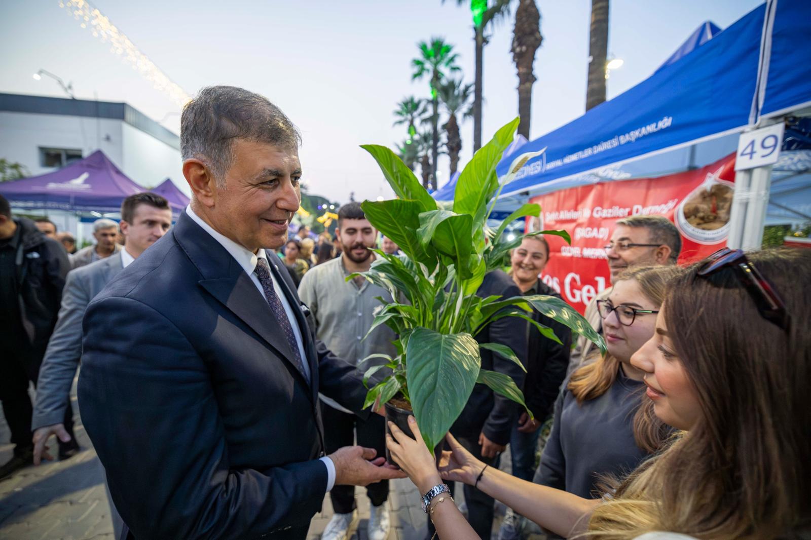 Festivale toplam 35 yerel üreticinin katıldığını belirten Başkan Tugay, üretici kooperatiflerinin kent için önemine değindi. Kooperatiflerin çabalarıyla dış mekan süs bitkileri üretim ve ihracatında İzmir'in ülke birincisi olduğuna dikkat çeken Başkan Tugay, “İzmir’de bin 270 hektarlık alanda toplam 208 milyon adet dış mekan süs bitkisi üretiliyor. Bunun ilçelere dağılımında Bayındır ve Ödemiş öne çıkıyor. Üretim alanında Türkiye’nin yaklaşık yüzde 32’sini, üretim miktarında ise yüzde 39’unu İzmir’de gerçekleştiriyoruz. Çiçekçilik bizler için bacasız sanayi gibi. İstihdam ve gelir potansiyelini daha da büyütmeliyiz. Bu sektörü şehrimizin kalkınmasında lokomotif haline getirebiliriz. Biz bu konuda İzmir Büyükşehir Belediyesi olarak üzerimize düşeni yapıyoruz. Tarım sektörünü destekliyoruz. Üreticinin yaşadığı zorlukları biliyoruz. Girdi maliyetleri yüksek, üreticinin emeği çoğu zaman karşılık bulamıyor. Ama üreticimiz direniyor, toprağını terk etmiyor. İşte bu festival, onların emeğine duyulan saygıdır, teşekkürdür. Üreticimizin yanında olmaya, onları güçlendirmeye devam edeceğiz. Bir yandan da iklim krizi, çevre felaketleri, doğal afet gerçekleri var. Doğa, tüm nimetlerini cömertçe sunuyor. Ama maalesef bazı insanlar aklı, bilimi, vicdanı geri plana atıyor ve doğaya gösterilmesi gereken saygı ve sevgide ihmalkar davranıyor. Oysa doğa, yaşam demek. Yaşama sahip çıkmamız gerekiyor” ifadelerini kullandı.