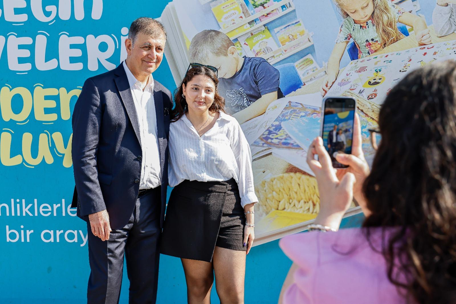 Konuşmaların ardından Başkan Tugay, gönüllü gençlerle bir araya gelerek sohbet etti. Gençler atölye sürecinde kullanacakları kitap, oyuncak gibi materyaller ve içerikler hakkında Başkan Tugay’a bilgi verdi. Gençlerle fikir alışverişi yapan Başkan Tugay, programın sonunda hatıra fotoğrafı çekildi.