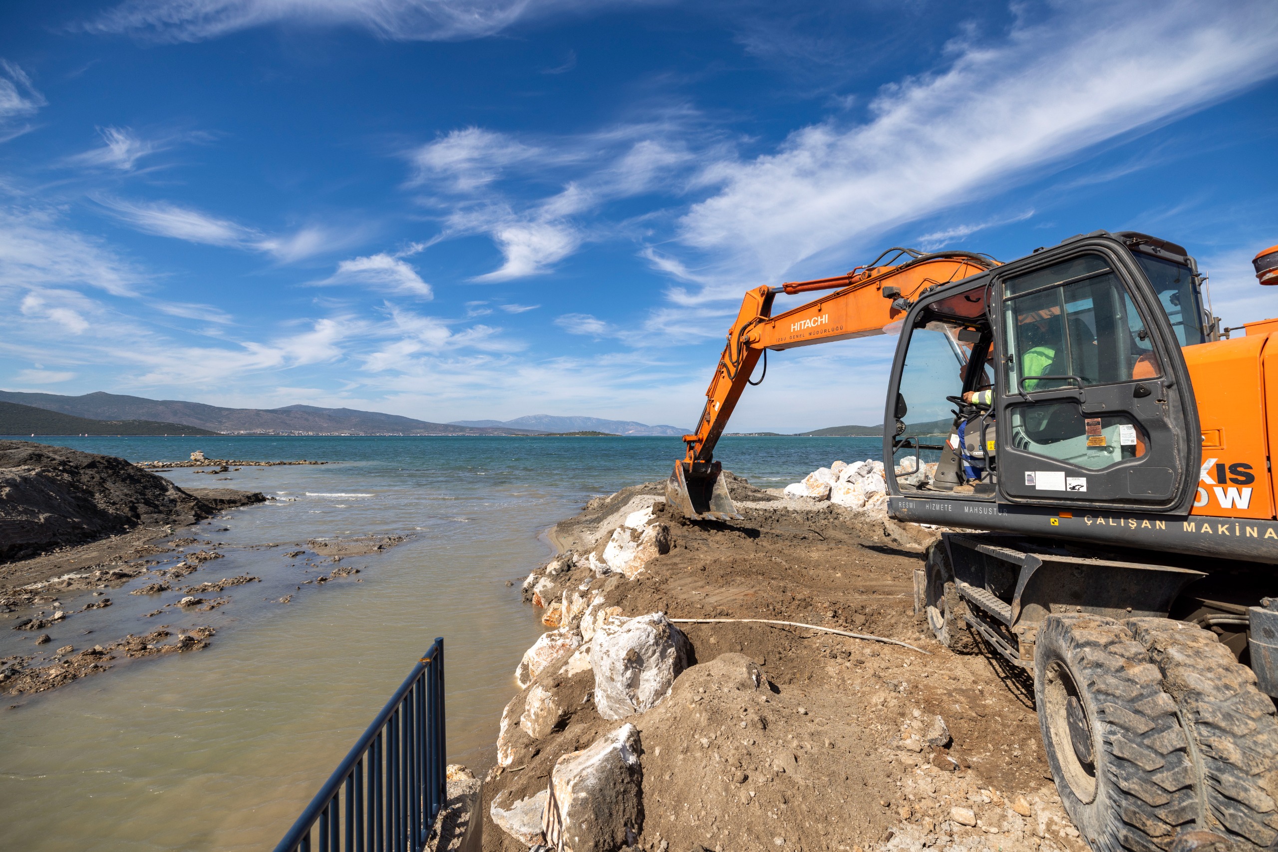 Seferihisar Akarca 2 Deresi, Urla Bademler İncirliboğaz Deresi, Çamlıçay Sivrice Deresi, İçmeler Çakal Deresi ve Çeşme Çiftlikköy Deresi’nde toplam 2 kilometrelik betonarme ve taş pere imalatı tamamlandı. Dere üzerlerine korkuluk montajları yapıldı, mevcut korkulukların boyanması ve onarımı da gerçekleştirildi. İçmeler Malgaca Deresi, Urla Pınarlı ve Çakal dereleri ile Çeşme Durmuş Deresi, Menderes Ahmetbeyli ve Karaburun Parlak Mahallesi Deresi’nde anroşman taş imalatları devam ediyor. Yıl sonuna kadar 12 bin ton taş imalatının tamamlanması planlanıyor. Vatandaşların afet anında mağduriyet yaşamaması için köy yollarında geçici yol geçişleri de oluşturuldu. Bugüne kadar 516 metre uzunluğunda, 23 yol geçişi yapıldı.