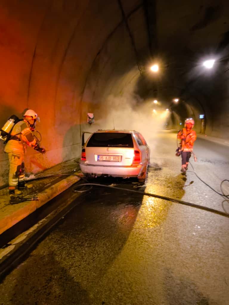 İzmir’de Konak Tünelleri’nde sabah saatlerinde bir araçta çıkan yangına İzmir Büyükşehir Belediyesi İtfaiye Dairesi Başkanlığı ekipleri kısa sürede müdahale etti. AKS ekiplerinin de tedbir amacıyla sevk edildiği olayda, can kaybı ve yaralı olmadığı belirtildi.