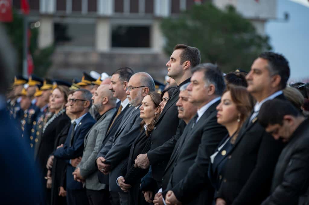 Törenin ardından günün anlamını değerlendiren Başkan Dr. Cemil Tugay, “Ülkemiz 87 yıldır bir hüzün yaşıyor. Kendi bağrından yetişmiş ve bugüne kadar yaşamış en büyük vatansever olan Gazi Mustafa Kemal Atatürk’ü kaybedişimizin üzerinden 87 yıl geçti. Yeri doldurulamadı; hiçbir zaman doldurulamaz. Onu kaybettiğimiz gün bizim için acı bir gün. Ama diğer taraftan da Atatürk’ün bize bıraktığı mirasa layık olmak, onun gereğinin yapmak için de her şeyin yeniden düşünülmesi gereken bir gün. Onun hayalindeki cumhuriyet, bugünden daha başka bir cumhuriyet miydi diye düşünüyorum. Bence daha çok çalışılması lazım. Hepimize düşen çok görev var. Işıklar içinde uyusun. Yaşadığımız süre boyunca onu her zaman sevdik, her zaman büyük minnet duyduk. Ölene kadar da böyle devam edecek” diye konuştu.