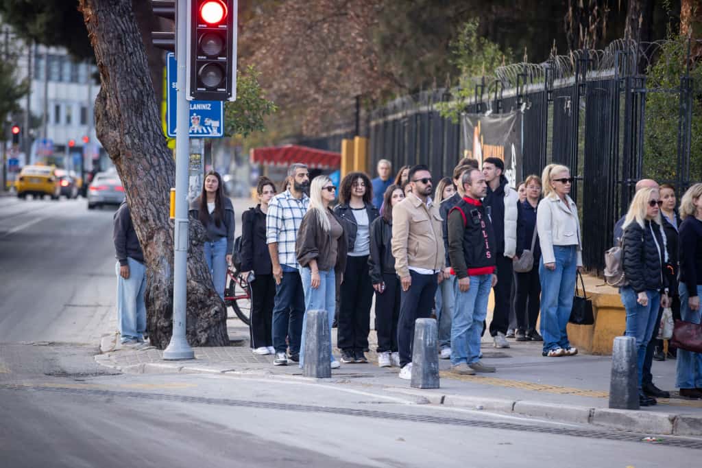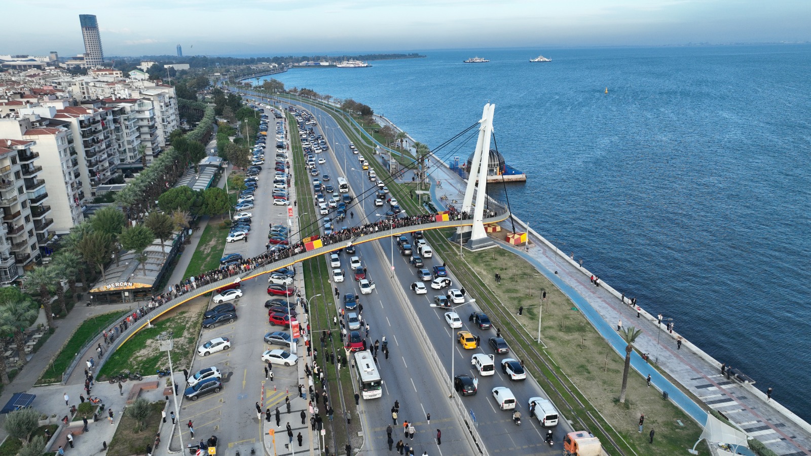 Saatler, Ata’nın hayata gözlerini yumduğu 09.05’i gösterdiğinde İzmir’de hayat iki dakika boyunca durdu. Cumhuriyet Meydanı’ndan yükselen sirenler, taşıtların kornalarıyla tüm kente yayıldı. İZDENİZ gemileri körfezde sirenleriyle eşlik etti. İzmirliler 7’den 70’e toplu taşıma araçlarında, caddelerde, meydanlarda, sokaklarda, iş yerlerinde, okullarda, şehrin dört bir yanında Ata’ya saygı duruşunda bulundu.
