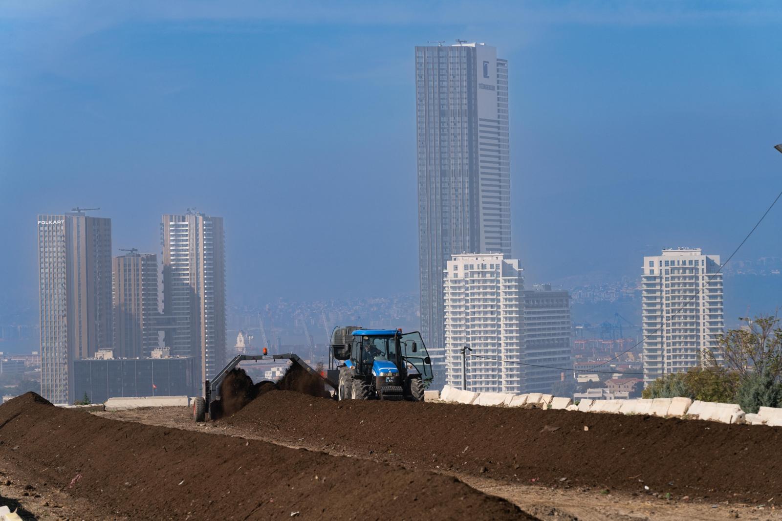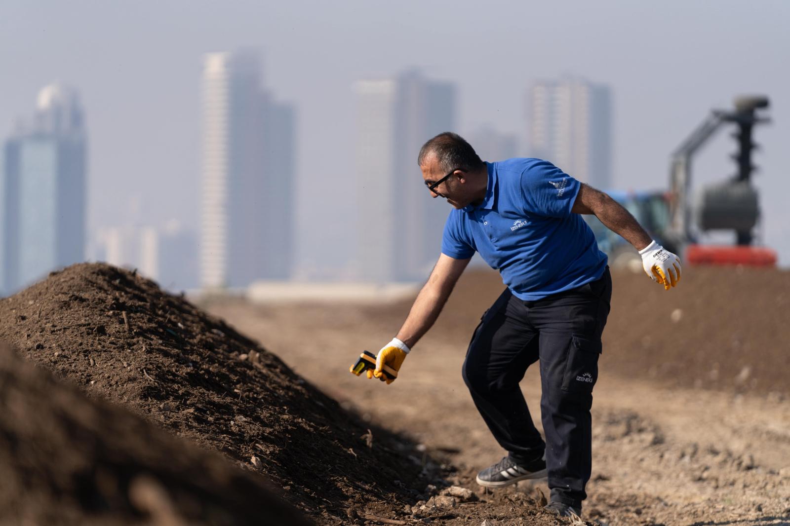 İzmir Büyükşehir Belediyesi, park ve bahçelerden çıkan günlük yeşil atıkları işleyerek kompost gübreye dönüştürüyor. Parklarda ve yangından zarar gören tarlalarda toprakla buluşan gübrelerle ekolojik ve ekonomik dönüşüm gerçekleştirilirken yılda 2 buçuk milyon lira tasarruf sağlanıyor.