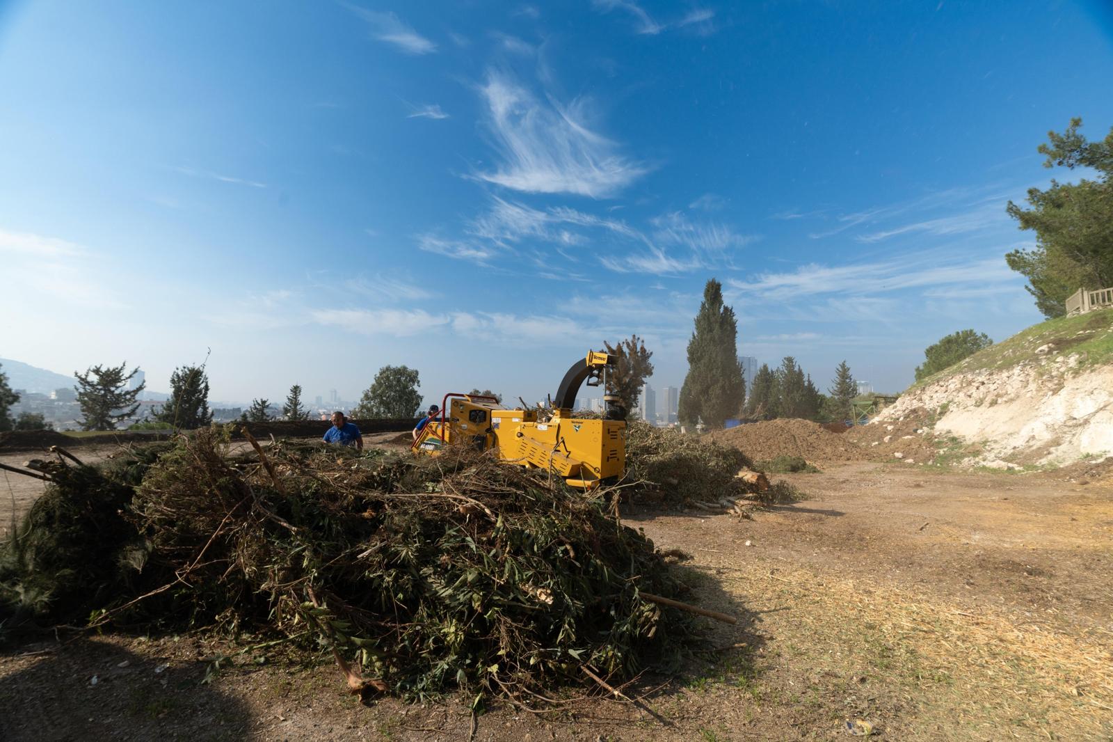İzmir Büyükşehir Belediyesi’ne bağlı, park, bahçe ve yeşil alanlardan ağaçların budanması, dal, yaprak kalıntısı ağaç parçaları, dökülen yapraklar, çim biçme artıkları Bornova’da bulunan Park ve Bahçeler Dairesi Başkanlığı’nın yerleşkesine getiriliyor. Toplanan malzemeler bu noktada öğütülerek gübrelerde kullanıma hazır hale getiriliyor. İzmir Büyükşehir Belediyesi önümüzdeki süreçte Başkan Dr. Cemil Tugay’ın ilçe belediye başkanlarına yaptığı çağrı çerçevesinde ilçe belediyelerinden gelen atıkların da dönüşümünü sağlamayı hedefliyor. İzmir Büyükşehir Belediyesi, apartmanlardan, evlerden, okullardan, kamu kurum ve kuruluşlarından, spor tesislerinden, sitelerin bahçelerinden ve kendi mülkiyetinde olmayan alanlardan çıkan yeşil atığın kompost gübreye dönüşümünü sağlamıyor.