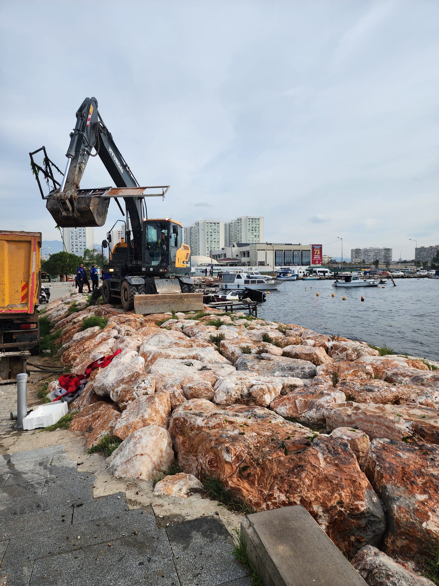 İzmir Büyükşehir Belediyesi Hemşehri İletişim Merkezi (HİM) ve Cumhurbaşkanlığı İletişim Merkezi’ne (CİMER) yapılan başvurular doğrultusunda, Bostanlı Balıkçı Barınağı ile Deniz Kafe arasında kalan kıyı bölümünde Kıyı Kanunu ve İmar Kanunu’nun ilgili yönetmeliklerine aykırı şekilde izinsiz yapılan platformlar ve ahşap iskeleler kaldırılıyor.