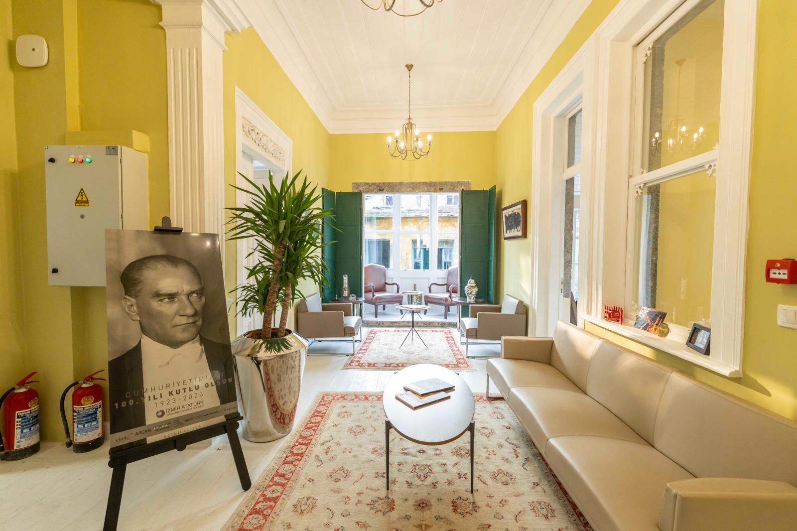 Kentin tescilli tarihi yapılarını hayata döndüren İzmir Büyükşehir Belediyesi, Basmane’nin özgün yapısı Ay Yıldızlı Konak’ın restorasyon çalışmalarını tamamladı. İzmir Büyükşehir Belediye Başkanı Dr. Cemil Tugay da misafirlerini haftanın birkaç günü burada ağırlamaya başladı. Basın mensuplarının sorusu üzerine Ay Yıldızlı Konak tercihini açıklayan Başkan Tugay, “Amacım şehrin bu bölgesinin gelişimine katkıda bulunmak. Tarihi yerleri birer birer yeniden kullanılır hale getirdikçe bu bölgeler yurttaşlarımızın da her gün gittiği bir alan olacak” dedi.