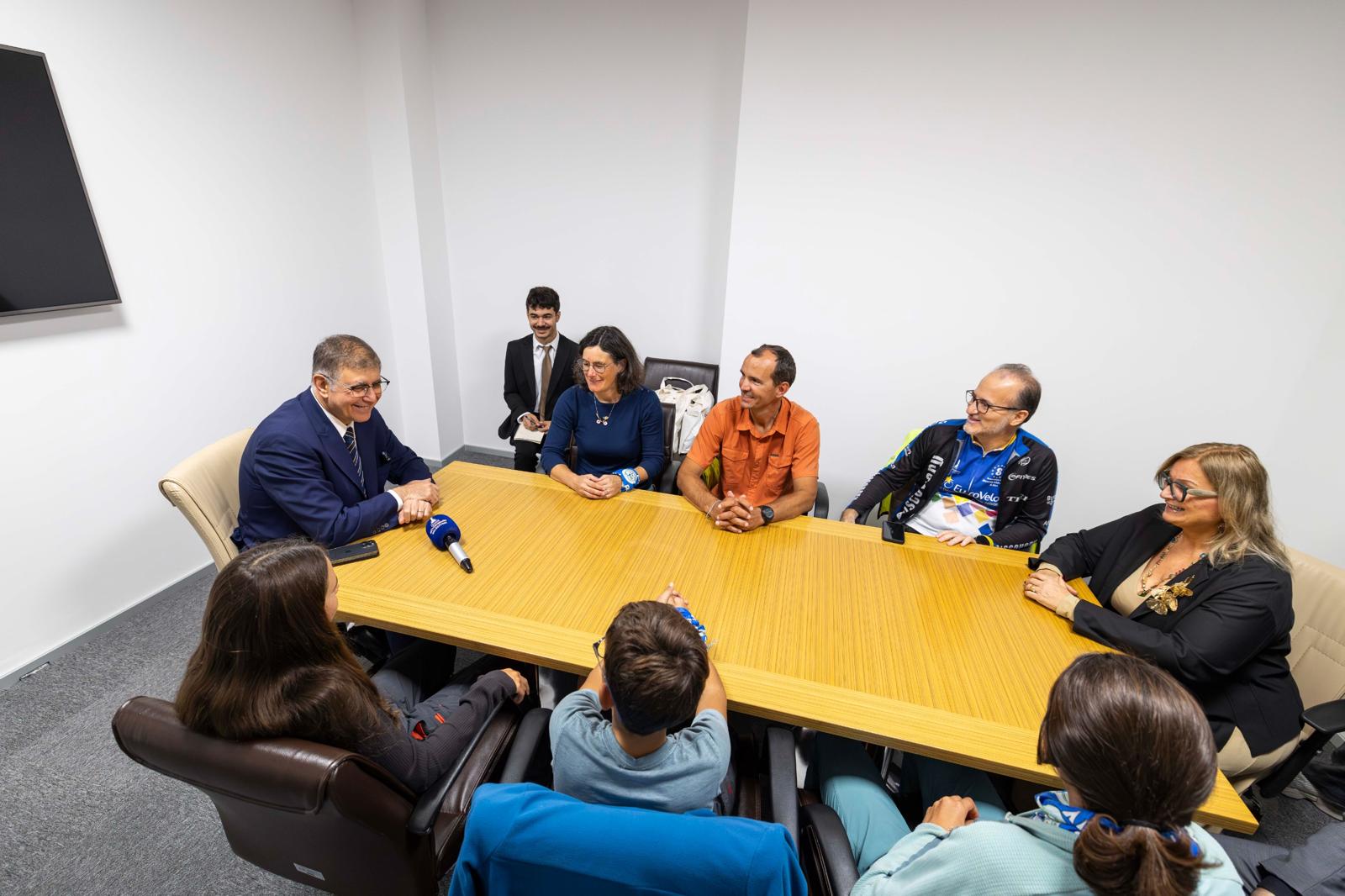 Bisikletleri ile dünya turuna çıkan beş kişilik Fransız Ravanas ailesinin yolu İzmir’den geçti. İzmir Büyükşehir Belediyesi’nin açık ofisini ziyaret eden aile, Başkan Tugay ile bir araya geldi.