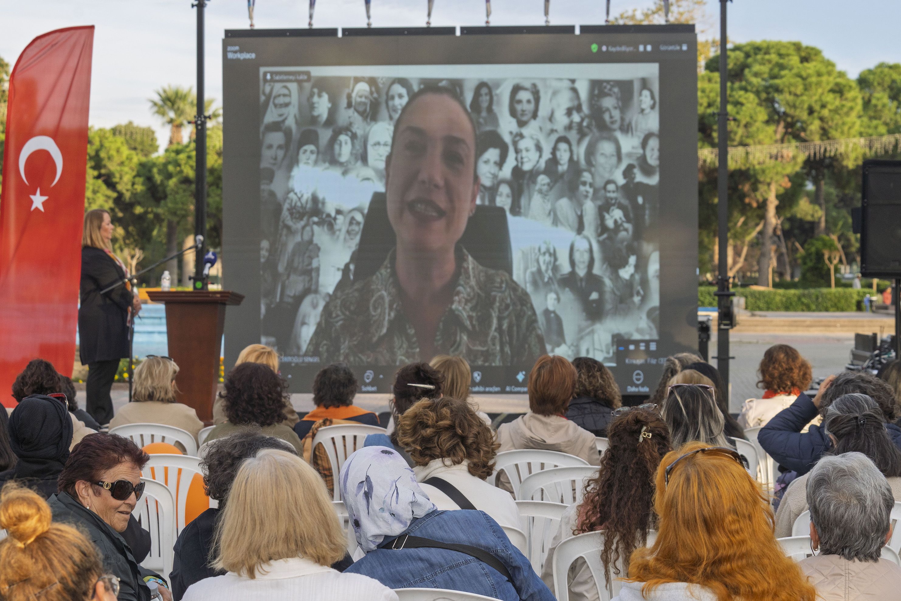 Etkinliğe video konferans ile katılanlar arasında Polonya Krakowa Belediyesi’nden Urzad Miasta Krakowa, KKTC CTP Milletvekili Doğuş Derya, akademisyen Prof. Dr. Sevda Alankuş, İstanbul Büyükşehir Belediyesi Sosyal Hizmetler Dairesi Başkanı Enif Yavuz Dipşar, akademisyen Prof. Dr. Melek Göregenli, İranlı gazeteci Shataw Moezi, Eşit Yaşam Derneği’nden Prof. Dr. Nazik Işık ve Canan Aydemir Özkara, Gençlik Örgütleri Forumu’ndan Berfin Atlı, Romanya Calinesti Belediyesi Başkanı Calinerti Commune, Cinsiyet Eşitliği İzleme Derneği’nden Ayla Çelik, Kadın Dayanışma Derneği’nden Seher Gündoğan, akademisyen Prof. Dr. Eser Köker, gazeteci Pelin Batu, Dünya Kadın Yürüyüşü kapsamında Venezuela’dan Alejendra Leprea ve Yıldız Temürtürkan, sanatçı İlkay Akkaya, Birleşmiş Milletler Nüfus Fonu’ndan (UNFPA) Aylin Çelik ve akademisyen Prof. Dr. Huriye Toker yer aldı.
