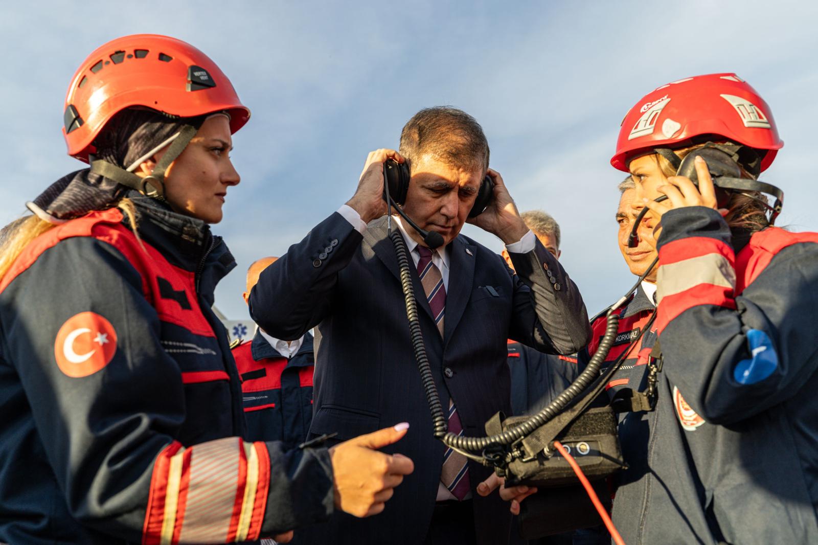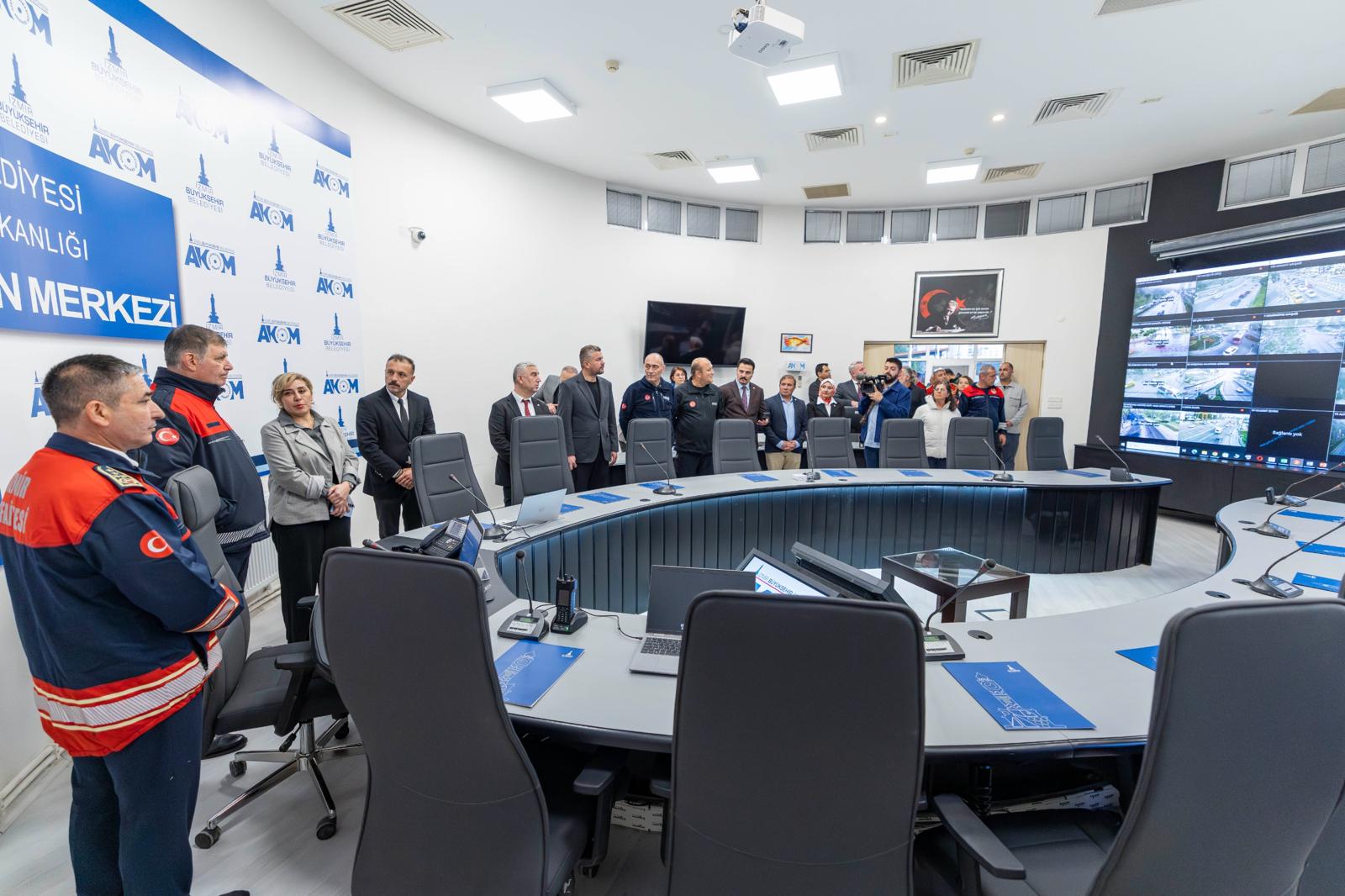 İzmir Büyükşehir Belediye Başkanı Dr. Cemil Tugay, aynı yerleşke içerisinde bulunan Afet İşleri Dairesi Başkanlığı Afet Koordinasyon Merkezi'ni (AKOM) ziyaret etti. Afet İşleri Dairesi Başkanı Eylem Ulutaş Ayatar, AKOM'un çalışmaları hakkında bilgi verdi.