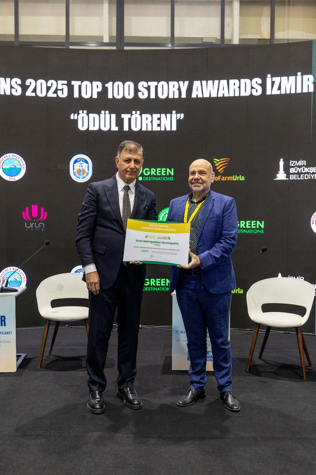 Green Destinations, kuruluşunun 10. yılında oluşturduğu Good Travel Alliance platformu ile son on yılda rejeneratif ve sürdürülebilir turizm alanında bölgesel ölçekte örnek teşkil eden liderleri onurlandırdı. İzmir Büyükşehir Belediyesi, sürdürülebilir turizmin alanında yaptığı çalışmalar neticesinde Green Destinations & Good Travel Alliance tarafından “Good Travel Frontrunner Award” - “Öncü Kuruluş” ödülü kazandı. Sürdürülebilir projelerle kente değer katanlara, Fuar İzmir'de düzenlenen Green Destinations 2025 En İyi Yüz Sürdürülebilir Turizm Projesi Ödül Töreni ile ödülleri verildi.