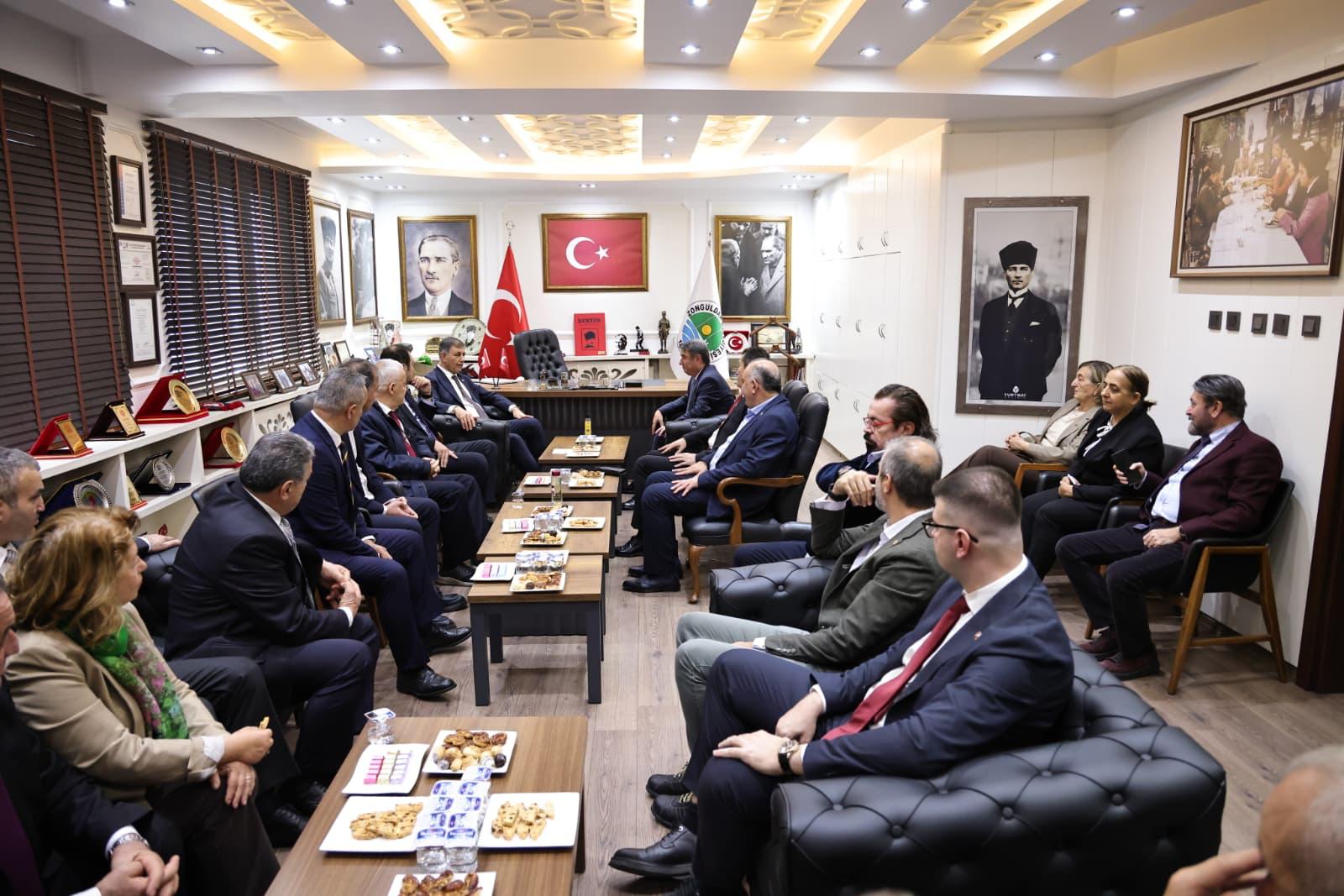 Başkan Tugay, panel öncesi şehrin endüstriyel mirasını yansıtan Maden Müzesi’ni gezdi. Tarihçi Ekrem Murat Zaman Başkan Tugay’a taş kömürünün tarihi ve üretim aşamaları aktardı. Müzeye ilk kez geldiğini belirten Başkan Tugay, kentin muhteşem bir endüstriye sahip olduğunu ve doğanın insanı çok etkilediğini söyledi. Müze ziyaretinin ardından CHP Zonguldak İl Başkanlığı’nı ziyaret eden Başkan Tugay, İl Başkanı Devrim Dural, il yöneticileri ve ilçe başkanları ile bir araya geldi. Başkan Tugay’a Zonguldak Tabip Odası Başkanı Prof. Dr. Eksal Kargı, Türk Tabipleri Birliği Merkez Konseyi Genel Sekreteri Prof. Dr. Önder Okay ve Çağdaş Gazeteciler Derneği Başkanı Ali Ayaroğlu da eşlik etti. İl Başkanı Dural, Tugay’ın ziyaretinden duyduğu memnuniyeti dile getirerek, “Enerjinin ve emeğin başkentine hoş geldiniz. İktidar yolculuğumuzda en büyük dayanağımız yerel yönetimlerimizdir” diye konuştu. İzmir’in selamını getirdiğini aktaran Başkan Tugay ise “Zonguldak bize uzak ama zihnimizde çok özel yeri olan bir kent. Türkiye’de sanayinin gelişmesinde lokomotif kentlerden birisi. Bülent Ecevit’in şehri aynı zamanda. Emeğin şehri. Bu anlamda bizim için çok değerli. Türkiye’nin her yerinde ve İzmir’de de Zonguldak hep özel bir yer olarak bilinir” dedi. “CHP ailesi olarak büyük bir aileyiz” diyen Başkan Tugay, “İl ve ilçe örgütlerimizin çalışmalarını biliyorum. Genel Başkanımız Özgür Özel çok güzel bir tanımlama yaptı, ‘buralar bizim baba ocağımız’ dedi. Bir yere gittiğimizde önce baba ocağını ziyaret edip sonra programımıza başlıyoruz. Burada olmaktan çok mutluyum” dedi.