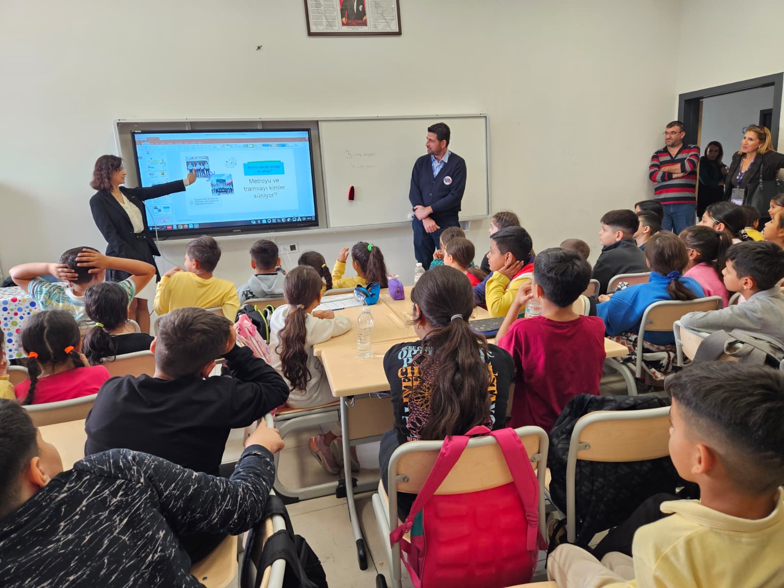 “Gözünüz Metro ve Tramvayda Olsun” başlıklı sunumda metro ve tramvayı kimlerin kullandığı, araçlara biniş kuralları ve yolculuk sırasında dikkat edilmesi gereken güvenlik adımları öğrencilere aktarıldı. Programa bir vatman da katılarak öğrencilerin sorularını yanıtladı. Eğitim programının farklı okullarla devam edeceği bilgisi verildi.