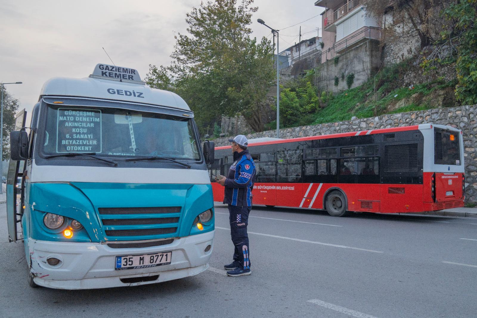Ertürk, özellikle akşam saatlerinde trafiğin yoğun olduğu bölgelerde kırmızı ışık ihlali ve ters yöne girme gibi tehlikeli davranışların arttığını vurgulayarak, “Sürücülerin beklememek için kırmızı ışıkta geçtiğini, şerit ihlali ve güzergah dışı hareket ettiğini görüyoruz. Bu durum hem yolcular hem de diğer sürücüler için büyük risk oluşturuyor. Temel hedefimiz cezai işlem uygulamak değil, sürücüleri kurallara uymaya teşvik ederek İzmir trafiğinde güvenliği artırmak. Sürücülere çağrımız, kendi güvenliklerini ve taşıdıkları yolcuların can güvenliğini riske atmadan trafik kurallarına uymaları” diye konuştu.