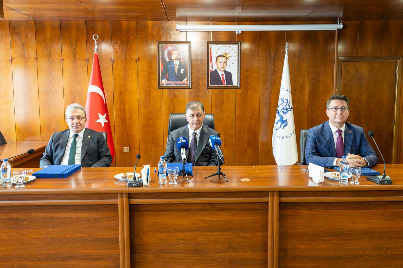 DEÜ Rektörü Prof. Dr. Bayram Yılmaz da üniversite olarak deprem araştırmalarıyla ilgili, böyle bir iş birliği anlaşmasının tarafı olmaktan dolayı büyük bir memnuniyet duyduklarını belirtti. Yılmaz, “DEÜ, Türkiye'de depremle ilgili bölümlerin komple yer aldığı çok az sayıdaki üniversiteden biri. Üniversitemizde Deprem Araştırma Uygulama Merkezi’miz var. Fakat bu araştırma merkezimizin yetersiz kaldığını düşünüyoruz. Bunu daha ileriye taşımak gibi bir düşüncemiz var. Bu araştırma merkezini tıpkı Boğaziçi Üniversitesi'nin Kandilli Rasathanesi ve Deprem Araştırma Enstitüsü gibi bir konseptle enstitüye çevirmek gibi bir gidişimiz olacak. Bu merkez deprem araştırmaları ve deprem riskini azaltmaya yönelik araştırmalar için bir araştırma uygulama enstitüsü olarak düşünülüyor. Yani sadece deprem olduktan sonra araştıran değil, risk azaltmaya yönelik çalışmaları ve teknolojileri de araştıran, geliştiren, uygulayan bir enstitü olmasını istiyoruz. Bu vesile ile İzmir Büyükşehir Belediyesi öncülüğünde yürütülen çalışmaların bir parçası olmaktan milletimiz, ülkemiz, güzel İzmir'imiz adına da memnuniyet duydum” dedi.