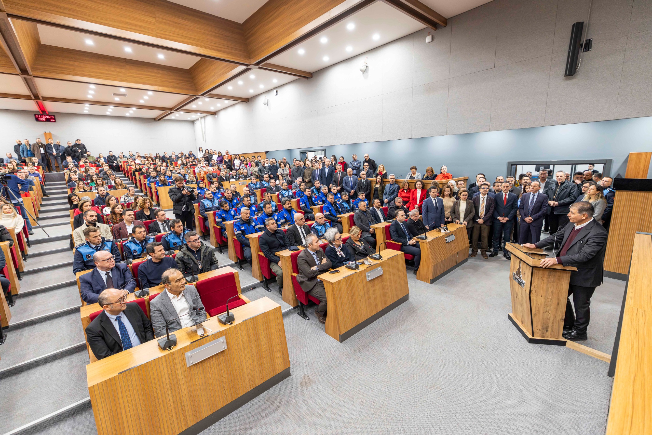 İzmir Büyükşehir Belediye Başkanı Dr. Cemil Tugay, yılın son iş gününde belediye personeliyle bir araya geldi. Kültürpark’taki İzmir Büyükşehir Belediyesi Meclis Toplantı Salonu’nda gerçekleşen buluşmaya yoğun bir katılım vardı. Büyükşehir Belediye Başkanı Dr. Tugay, kentte gerçekleştirilen hizmetler için İzmir halkı adına belediye üst yönetimine ve tüm personele teşekkür etti.