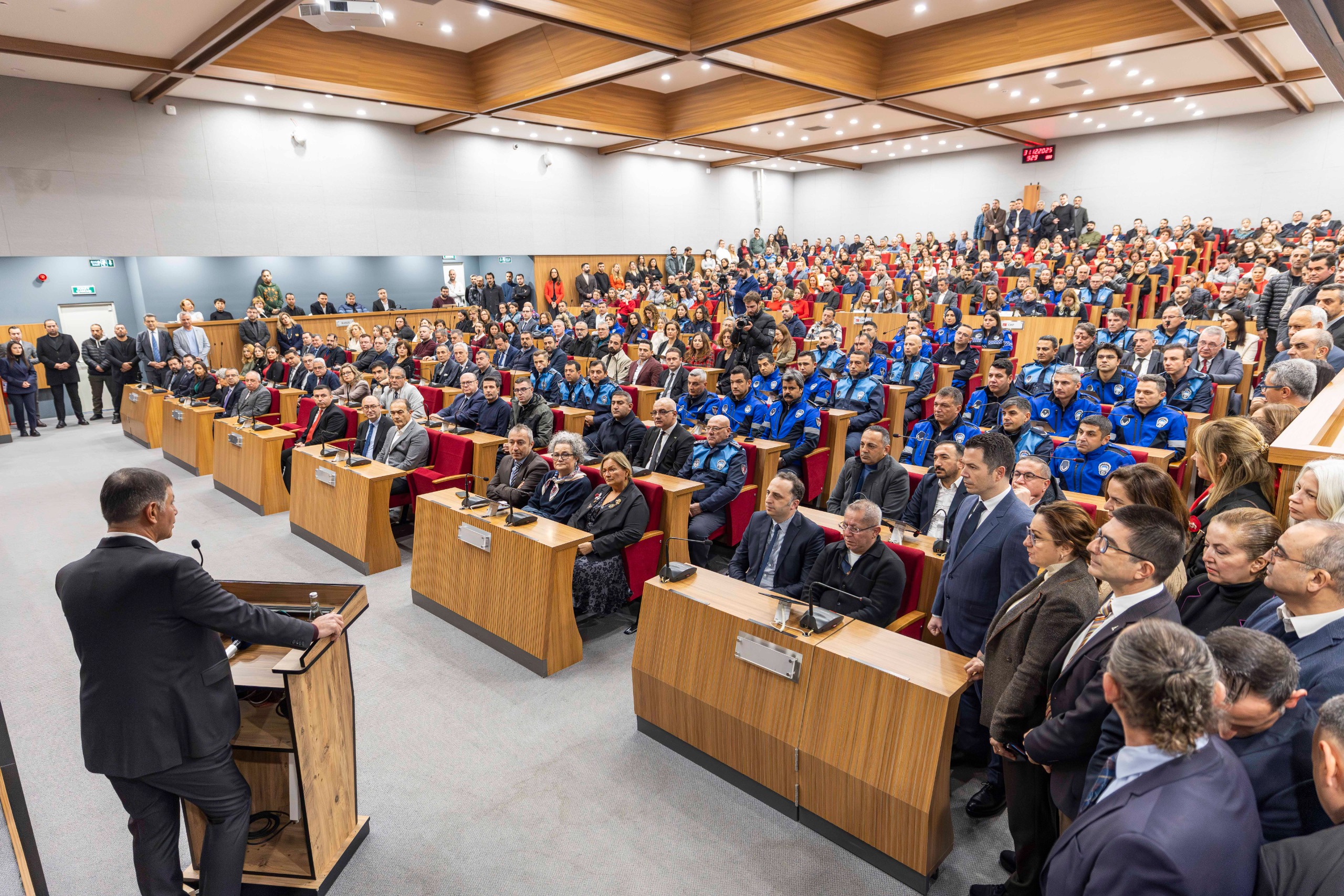 İzmir Büyükşehir Belediyesi’nin personelinin yeni yılını kutlamak için düzenlenen etkinlikte konuşan İzmir Büyükşehir Belediye Başkanı Dr. Cemil Tugay, kentteki tüm yurttaşlara ayrım gözetmeksizin sunulan hizmetler için çalışma arkadaşlarına teşekkür etti. Tugay, “İşimiz bizim namusumuzdur. Daha fazla çalışan, daha az hata yapan bir belediye başkanı olmak için elimden geleni yapacağım. Biz bu yola baş koyduk ama tüm çalışma arkadaşlarımıza ihtiyacımız var. Bu dev kurumun her bir bireyine ihtiyacımız var” dedi.