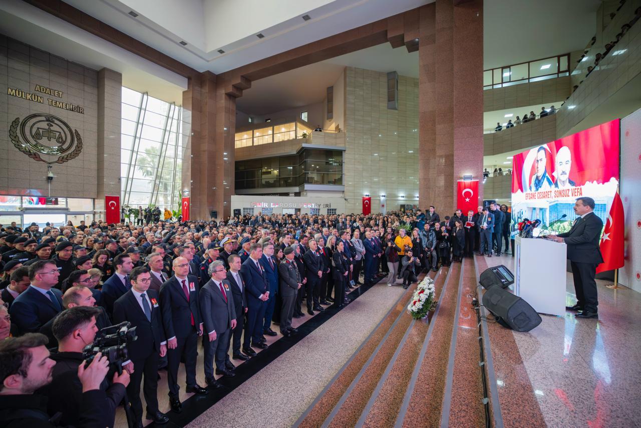 İzmir Büyükşehir Belediye Başkanı Dr. Cemil Tugay, 5 Ocak 2017’de İzmir Adliyesi’ne yönelik terör saldırısında şehit olan polis memuru Fethi Sekin ile adliye çalışanı mübaşir Musa Can’ın 9’uncu ölüm yıl dönümü nedeniyle düzenlenen törene katıldı.