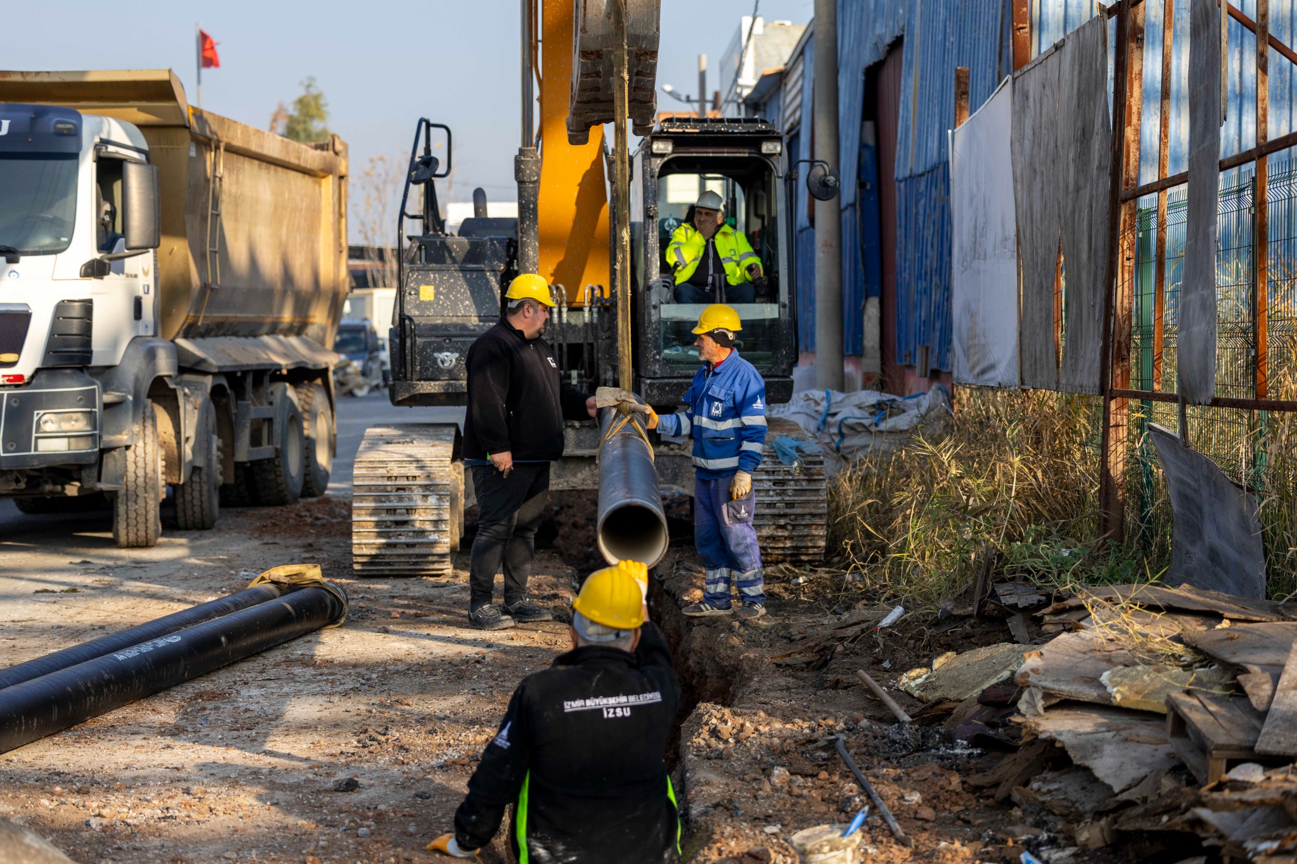 İZSU Genel Müdürlüğü, kentin farklı noktalarında sürdürdüğü altyapı yatırımlarıyla İzmir’in su altyapısını güçlendirmeye ve kenti geleceğe hazırlamaya devam ediyor. Bu kapsamda Gaziemir’in Sarnıç Mahallesi’nde 205 milyon liralık yatırımla yürütülen çalışmalarla içme suyu altyapısı baştan sona yenileniyor. Fatih ve Hürriyet mahallelerinde eş zamanlı sürdürülen imalatlarda, ekonomik ömrünü dolduran mevcut PVC borular sökülerek yerine dayanıklı ve uzun ömürlü duktil borular döşeniyor. Yüzde 25’i tamamlanan proje ile hem kayıp-kaçak oranlarının azaltılması hem de artan nüfusun uzun yıllar boyunca güvenli içme suyuna kesintisiz erişiminin sağlanması hedefleniyor.