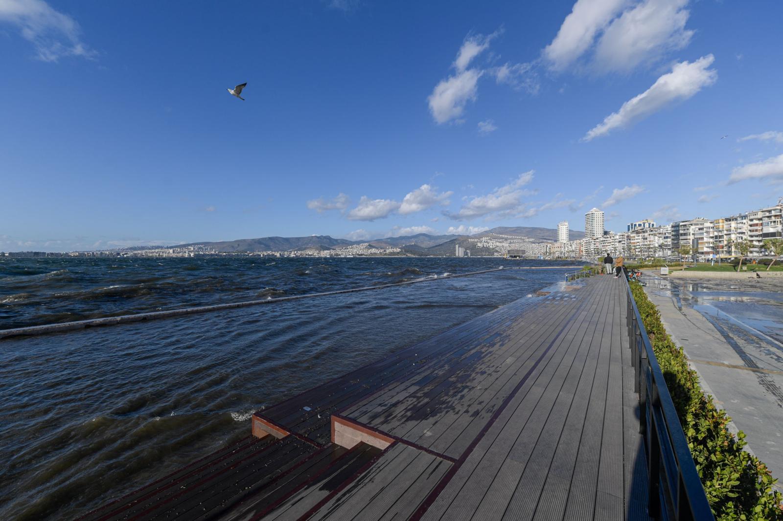 İzmir’de etkili olan yağmurun ardından öğleden sonra şiddetli fırtına ile birlikte deniz seviyesi yükseldi. Saat 16.00’dan itibaren körfezin suları karaya doğru ilerledi. Bu noktada İzmir Büyükşehir Belediyesi’nin inşa ettiği fırtına duvarı deniz sularının önünü keserek 1. Kordon’u olası bir baskından korudu. Duvarın denize bakan kısmı suyla kaplanırken, kara tarafında ise yaşam olağan akışıyla devam etti.