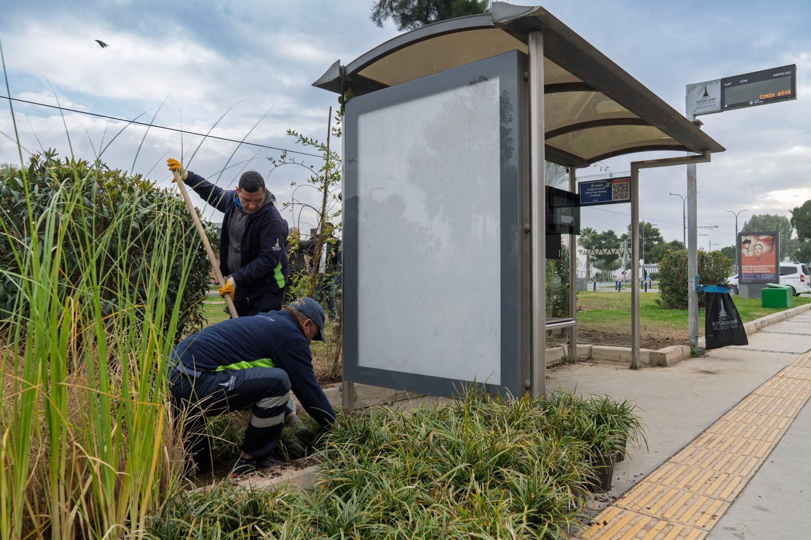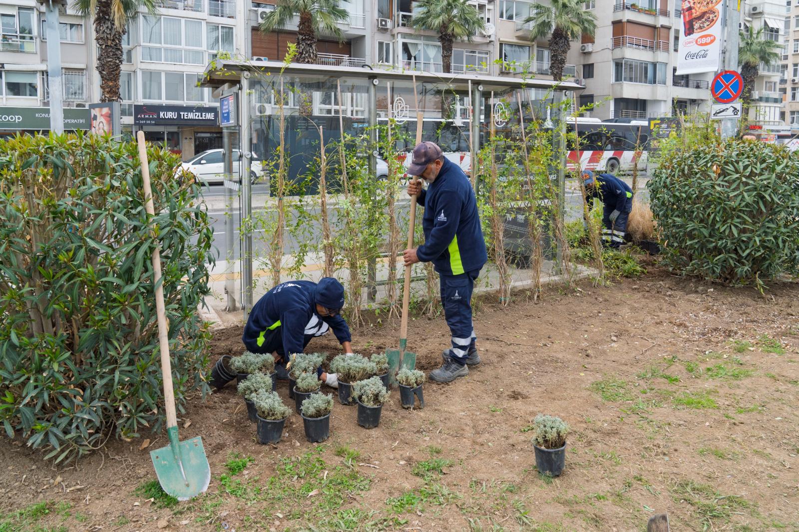 Çalışmalar hakkında bilgi veren Park ve Bahçeler Dairesi Başkanlığı Güney Alanlar Bakım Şube Müdürlüğü’nde görevli Peyzaj Mimarı Koray Aydın, “Bu projeye başkanımızın talimatıyla başladık. Amacımız, durak yüzeylerinin çevresini ve çatılarını yeşillendirerek iklimsel, estetik ve görsel açıdan nitelikli bir uygulamayı hayata geçirmek. Projeyle İzmir’in estetik görünümüne katkı sağlıyoruz. Başkanımızın bu konuda özel bir hassasiyeti bulunuyor. Kullandığımız bitkilerde, diğer alanlarda olduğu gibi kuraklığa dayanıklı türleri tercih ediyoruz. Pennisetum, lavanta, lavantin ve biberiye gibi bitkiler kullanıyoruz. Durak arkalarında ise sarıcı bitkilere yer veriyoruz” dedi.