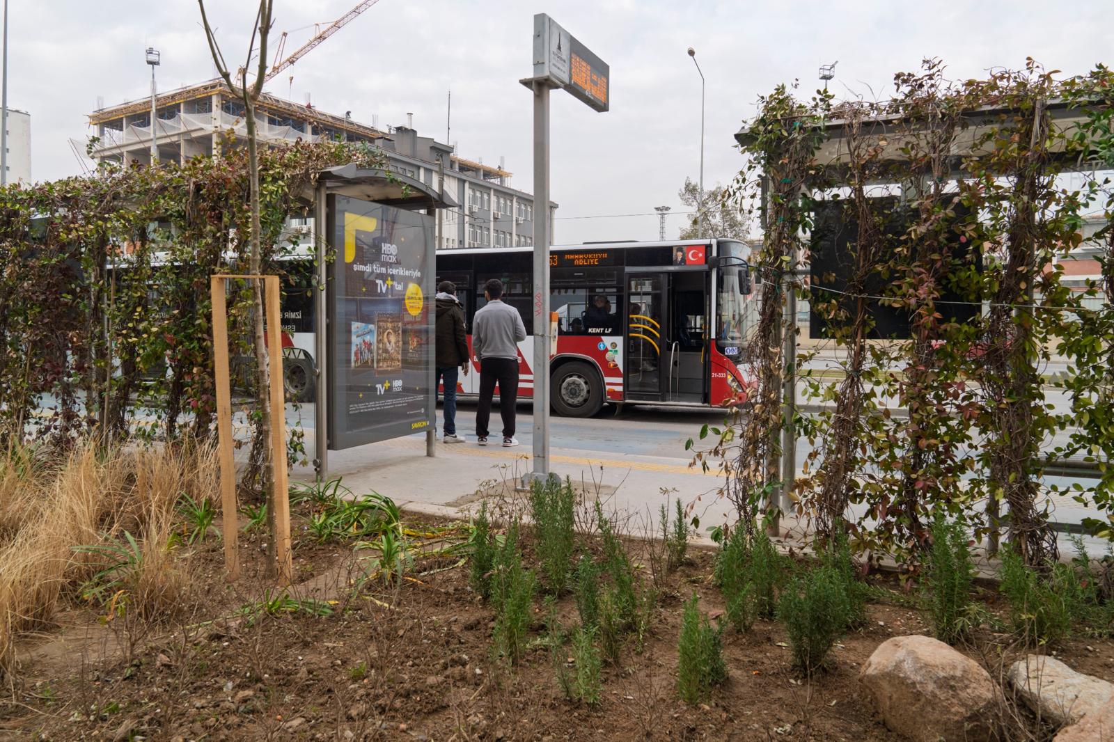 İzmir Büyükşehir Belediye Başkanı Dr. Cemil Tugay’ın daha az suyla daha yeşil bir İzmir hedefiyle başlattığı yeşil dönüşüm çalışmaları, viyadük altları, refüjler ve kavşaklar gibi kamusal alanların ardından otobüs duraklarıyla devam ediyor. İzmir Büyükşehir Belediyesi Park ve Bahçeler Dairesi Başkanlığı, kent merkezinde hizmet veren ESHOT otobüs duraklarının üstünde ve çevresinde peyzaj çalışmaları başlattı. İklim krizine duyarlı, az su tüketen kurakçıl bitkilerle gerçekleştirilen peyzaj çalışmaları kapsamında durak çevreleri yeşil bir görünüme kavuşturuluyor. Durakların zemininden tavanına kadar sarıcı bitkilere yer veriliyor. İlk etapta 21 durak için belirlenen yeşil dönüşüm çalışmalarının, ilerleyen süreçte İzmir geneline yayılması hedefleniyor. Peyzaj çalışmaları tamamlanan otobüs durakları, hem kent estetiğine değer katıyor hem de durak çevresini daha temiz bir görünüme kavuşturuyor.