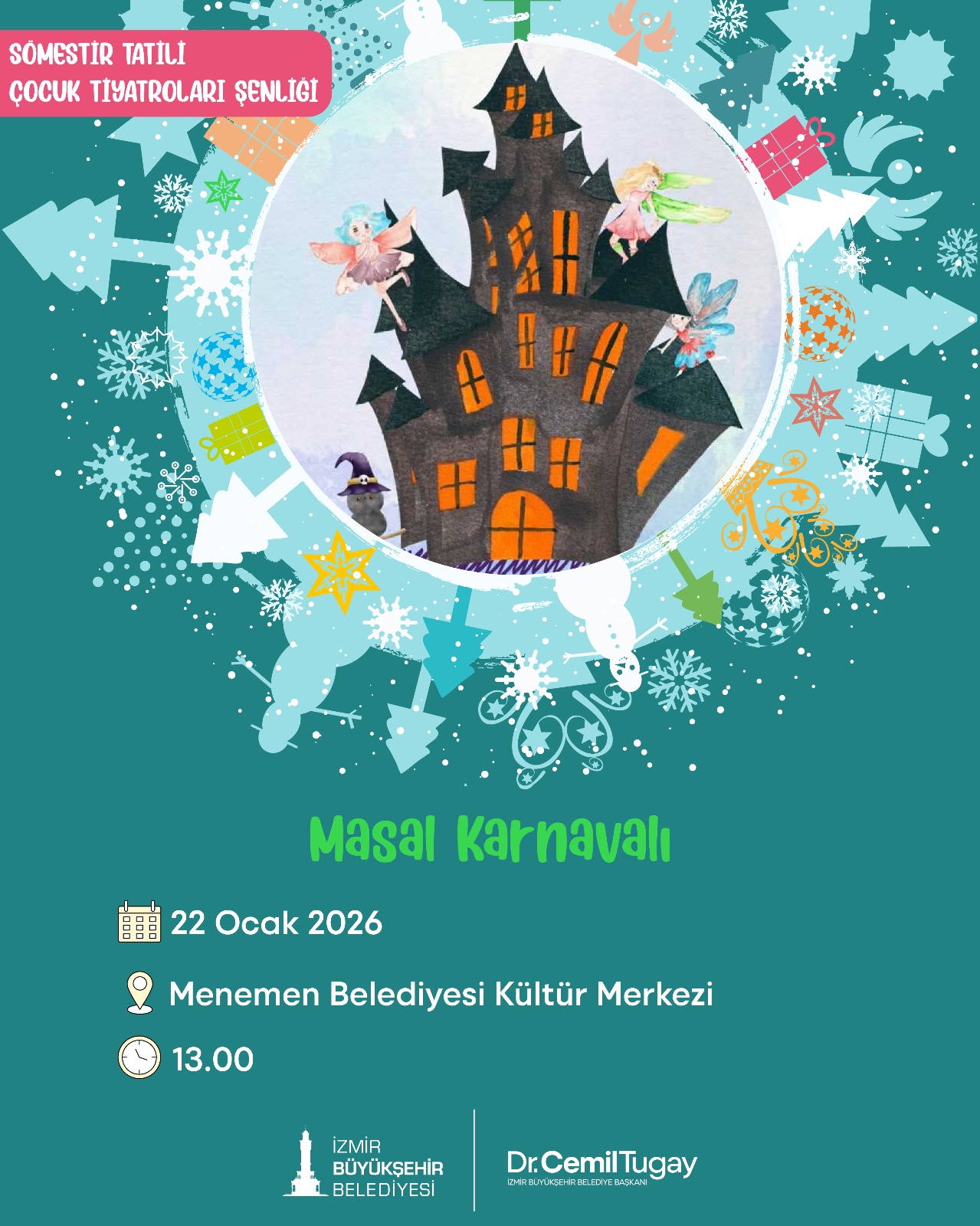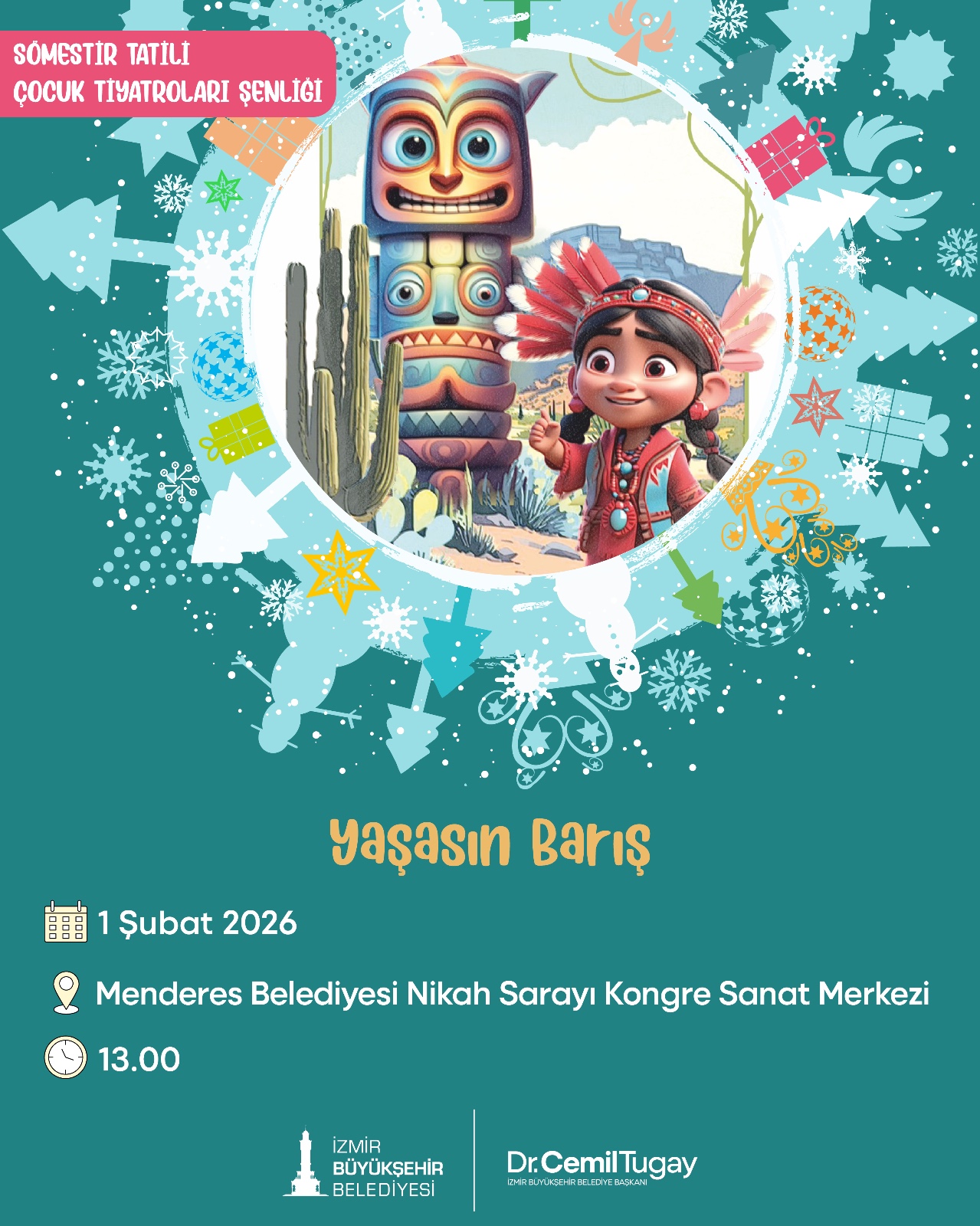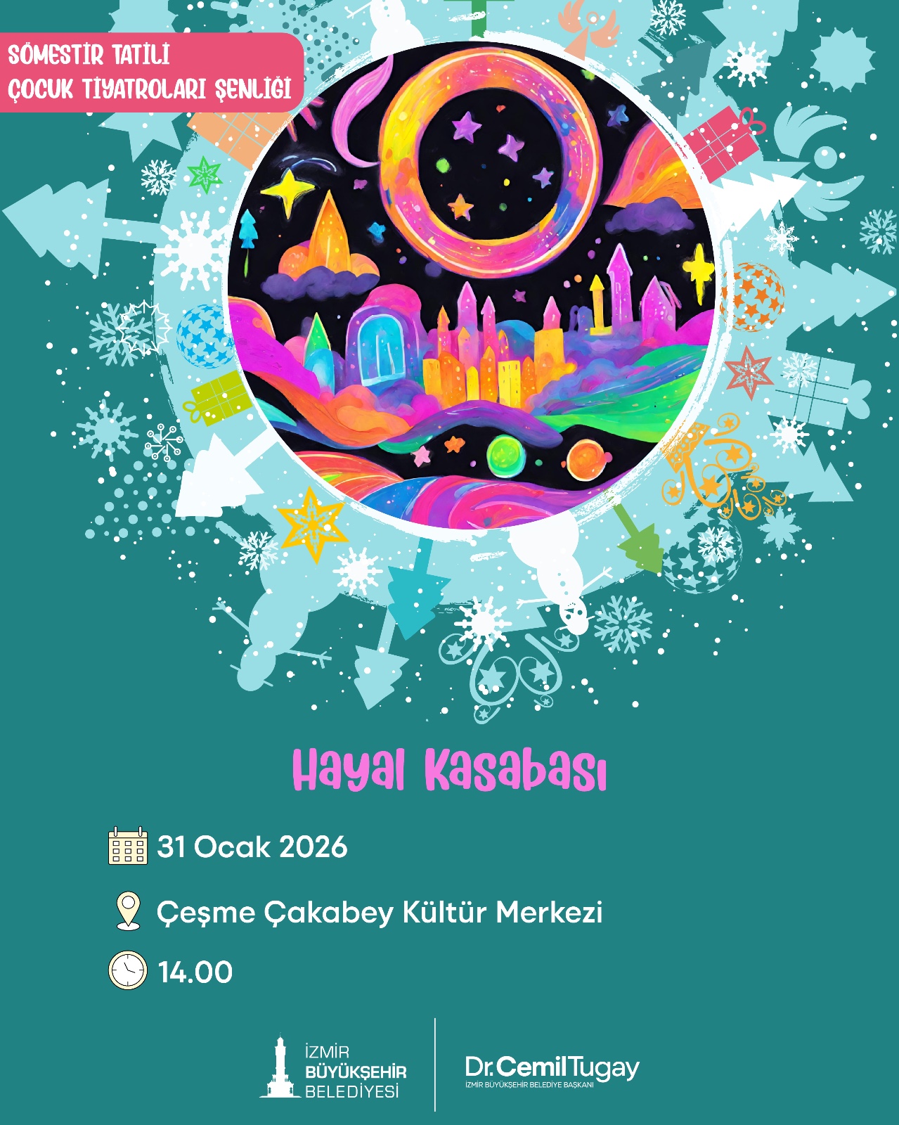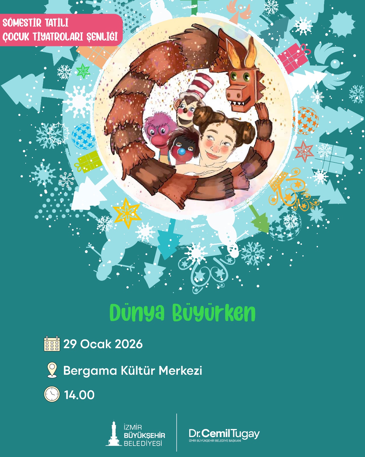 İzmirli çocuklar, sömestr tatilinde İzmir Büyükşehir Belediyesi tarafından düzenlenecek Çocuk Tiyatroları Şenliği’nde buluşacak. 18 Ocak-1 Şubat tarihleri arasında kentin farklı noktalarında 10 farklı tiyatro oyunu, çocukları eğlenceli ve eğitici bir yolculuğa çıkaracak.