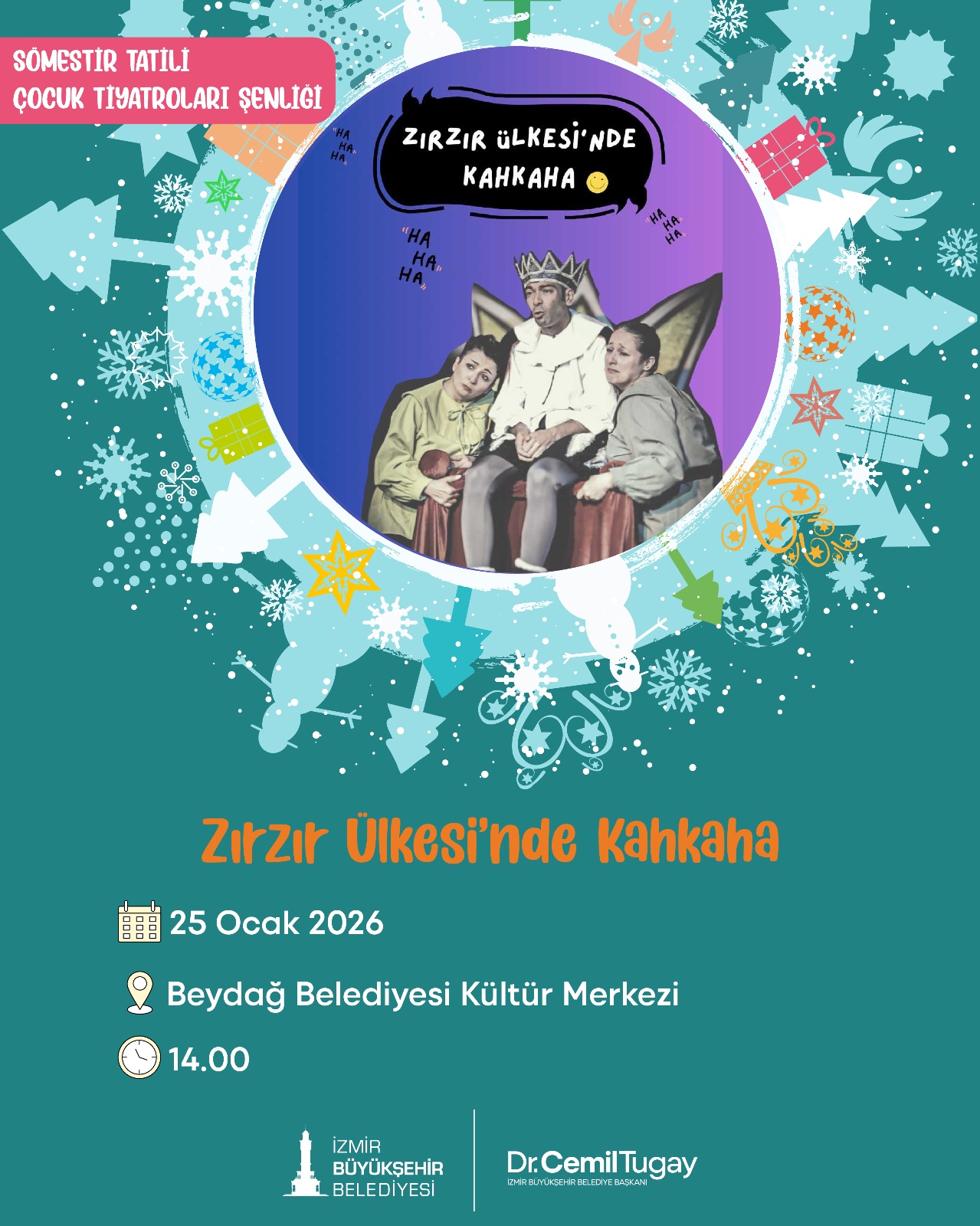 Beydağ Belediyesi Kültür Merkezi’nde Zırzır Ülkesinde Kahkaha oyunu, 25 Ocak saat 14.00’te olacak. Ecem ile Çilek oyunu ise 27 Ocak saat 13.00’te Aliağa İzmir Büyükşehir Belediyesi Kültür Merkezi’nde sahnelenecek.
