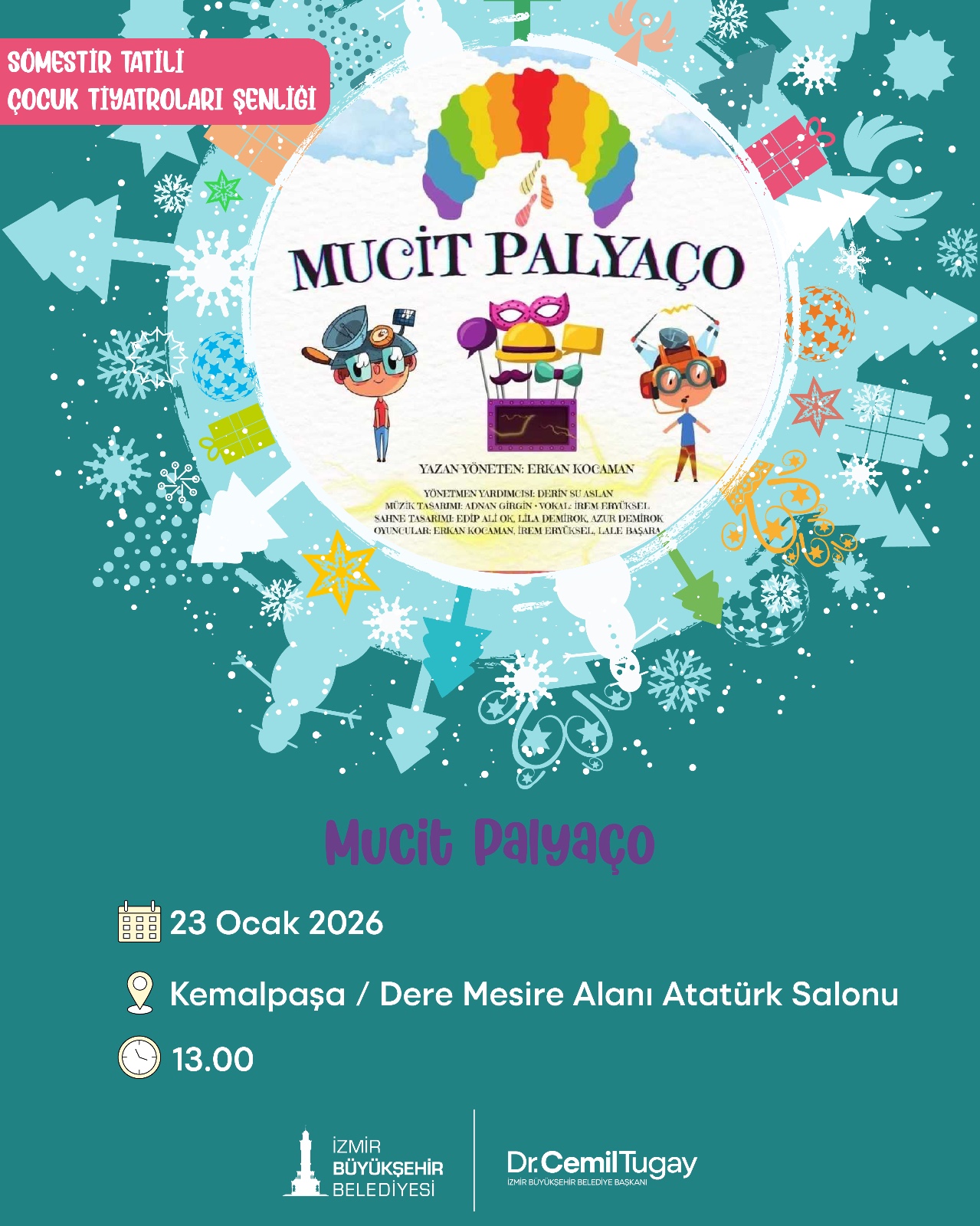 İzmir Büyükşehir Belediyesi, sömestr tatilinde İzmirli çocuklar için Çocuk Tiyatroları Şenliği düzenliyor. 18 Ocak-1 Şubat tarihleri arasında kentin dört bir yanında gerçekleştirilecek şenlik, çocukları birbirinden eğlenceli ve eğitici tiyatro oyunlarıyla buluşturacak.