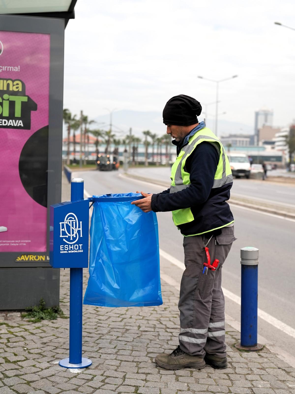 İzmir Büyükşehir Belediye Başkanı Dr. Cemil Tugay’ın, halkın günlük yaşamını doğrudan etkileyen ihtiyaçları önceleyen belediyecilik anlayışı doğrultusunda, ESHOT Genel Müdürlüğü tarafından otobüs duraklarında kullanılmak üzere tasarlanan yeni çöp kovalarının çalışmaları tamamlandı. Yeni çöp kovalarının montajına kent genelinde başlanırken, uygulamanın duraklarda temizlik ve düzeni artırması hedefleniyor.