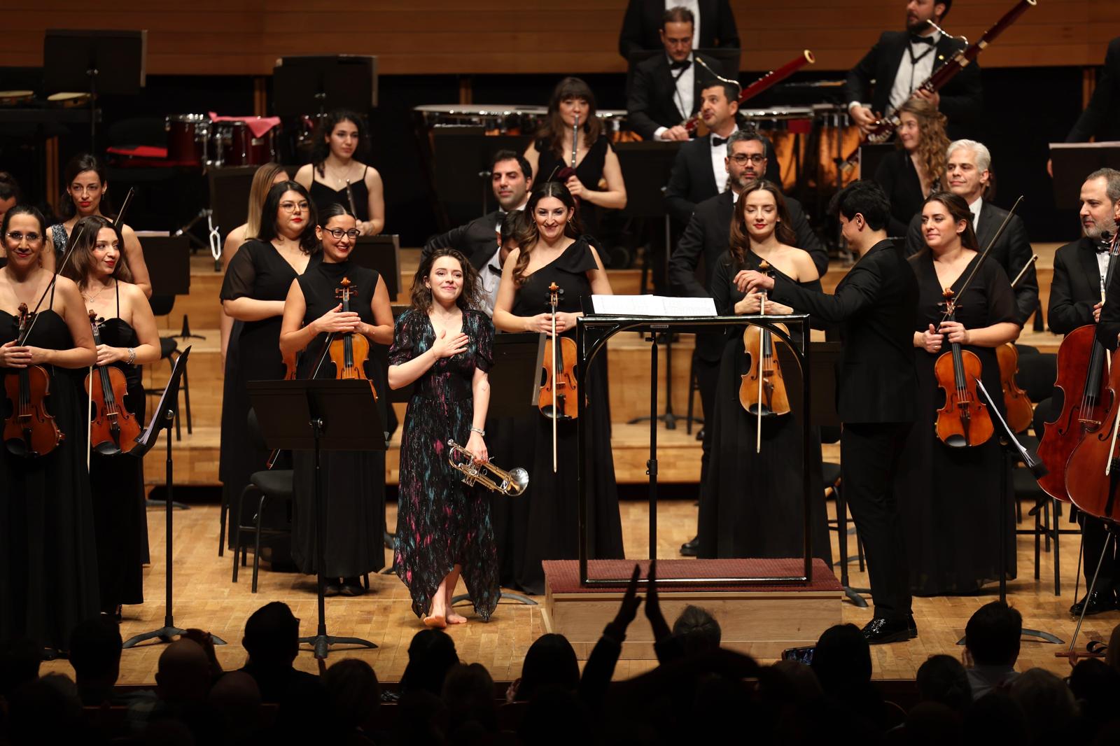 İzmir Büyükşehir Belediyesi’ne bağlı İzmir Oda Orkestrası, farklı disiplinlerden dünyaca ünlü sanatçılarla aynı sahneyi paylaşarak zengin repertuvarını İzmirli sanatseverlerle buluşturmaya devam ediyor. Orkestra, Ahmed Adnan Saygun Sanat Merkezi’nde gerçekleştirilen özel konserde, birçok ödülün sahibi ve Warner Classics etiketiyle yayımlanan dört albümü bulunan dünyaca ünlü trompet sanatçısı Lucienne Renaudin Vary ile Avrupa’nın önde gelen orkestralarını yöneten ve Strazburg Filarmoni Orkestrası Müzik Direktörü Şef Aziz Shokhakimov ile sahneye çıktı. Şef Aziz Shokhakimov yönetimindeki orkestranın programında, Haydn’ın Trompet Konçertosu, Gershwin’in Paris’te Bir Amerikalı ve Rimsky-Korsakov’un Bin Bir Gece Masalları’ndan esinlenen Şehrazad eserleri yer aldı. İzmir Oda Orkestrası Başkemancısı Deniz Toygür ve orkestra üyeleri, Şehrazad’ın Bin Bir Gece Masalları’nda sultana anlatılan öyküleri kemanlarıyla sahneye taşıdı. Konseri, İzmir Büyükşehir Belediye Başkanı Dr. Cemil Tugay da İzmirli sanatseverlerle birlikte izledi ve orkestranın performansını büyük bir beğeniyle takip etti.