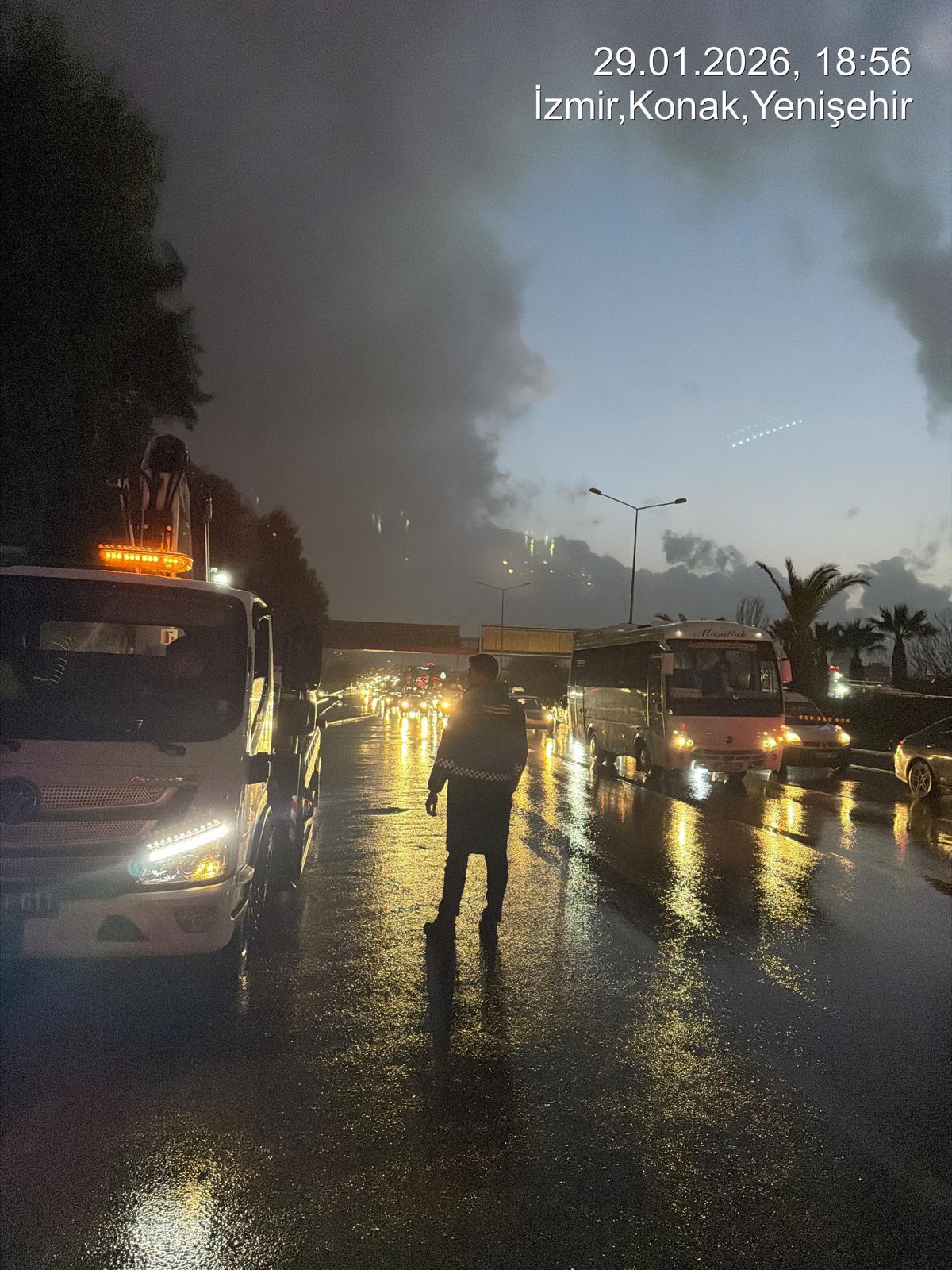İzmir Büyükşehir Belediyesi, yağış öncesinde AKOM koordinasyonunda hazırlanan kuvvetli yağış, sel ve fırtına hazır müdahale planını devreye aldı. Bu kapsamda İtfaiye, İZSU, Fen İşleri, Yol Yapım, Park ve Bahçeler, Zabıta ve ilgili tüm birimlerde ekip, araç ve personel görevlendirmesi yapıldı. Riskli noktalarda önleyici tedbirler alınırken, ihbarlara hızlı müdahale edilebilmesi amacıyla ekipler kritik bölgelerde önceden konuşlandırıldı. Gece boyunca başta ana arterler olmak üzere kent genelinde yol temizlik ve kanalizasyon temizlik çalışmalarına devam edildi. Yağıştan etkilenen bölgelerde biriken su ve atıklar temizlenirken, taşkın riski bulunan alanlarda da kontroller gerçekleştirildi.