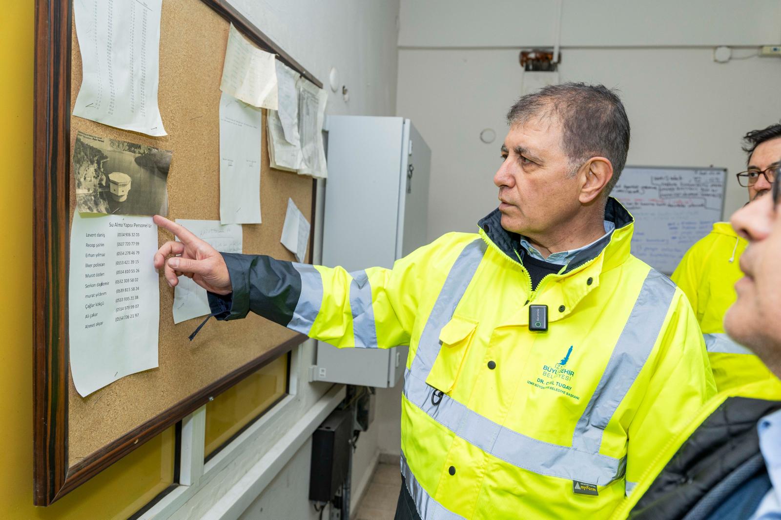Başkan Tugay, “Bizim için çok önemli olan Tahtalı Barajı’nda suyun çekildiği kulenin olduğu noktadayız. Biraz önce de arıtma tesisini ziyaret ettik. Su istediğimiz seviyede değil. Yağmurlar oluyor ama barajın dolması daha uzun süre yağmur yağmasını gerektiriyor. Yoğun yağışlarla birlikte gelen toprak kirlilik yarattı ve arıtma tesisinin sıkıntı yaşamasına neden oldu. Arkadaşlarımız yaptıkları ölçümlerle suyu takip ediyorlar, belli bir seviyeden sonra arıtma tesisi eski kapasitesine kavuşacak. Geçici olarak su kesintisi yapılması gerekti. Onun nedeni bu aslında. Suda arıtmanın hızını aşan bir kirlilik vardı” dedi.