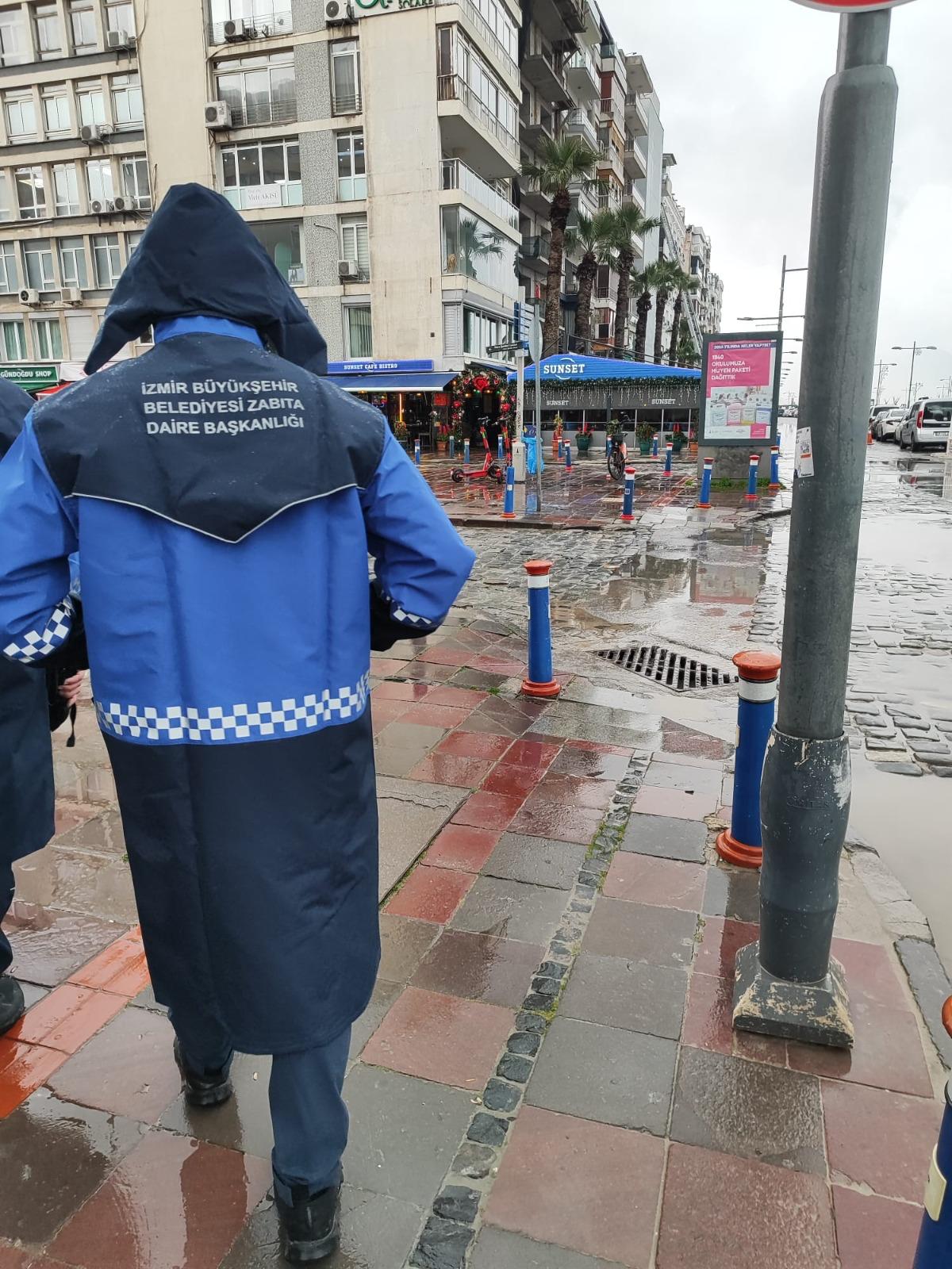 Zabıta Dairesi Başkanlığı da yağış ve fırtına uyarısı kapsamında il genelinde teyakkuz haline geçti. Toplam 175 personel ve 40 araç sahada aktif olarak görevlendirildi. Zabıta Denetim ekipleri kritik noktalarda, Trafik Zabıtası ana arterlerde trafik akışının güvenliğini sağlamak üzere, Çevre ve İmar Zabıtası ise çevresel risklere karşı görev yapıyor. Konak, Kemeraltı, Kordon, Alsancak, Karşıyaka, Bayraklı, Buca ve Balçova başta olmak üzere riskli bölgeler sürekli kontrol altında tutuluyor. Ekipler tarafından bazı noktalarda rögar taşmaları ve su birikintilerine müdahale edilirken, tehlike arz eden alanlar emniyet şeritleriyle güvenli hâle getirildi. Zabıta, İZSU ve Park ve Bahçeler Dairesi ile koordinasyon içinde çalışmalarını sürdürüyor.