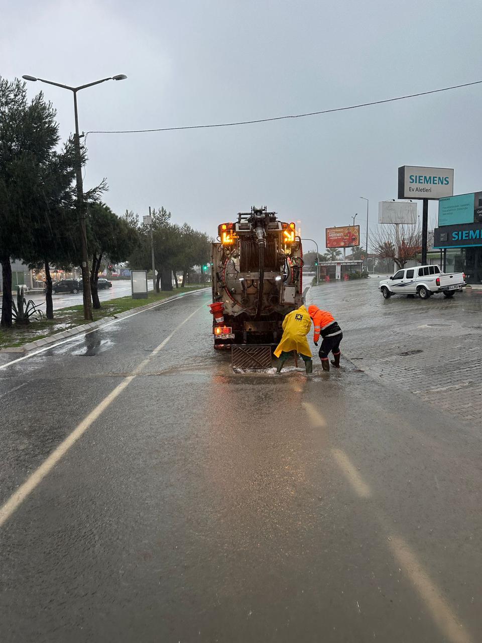 Belirlenen bu noktalarda yapılan çalışmalarla suyun tahliyesi sağlanırken, ulaşımın güvenli ve kontrollü şekilde devam etmesi için gerekli tüm önlemler alındı.
