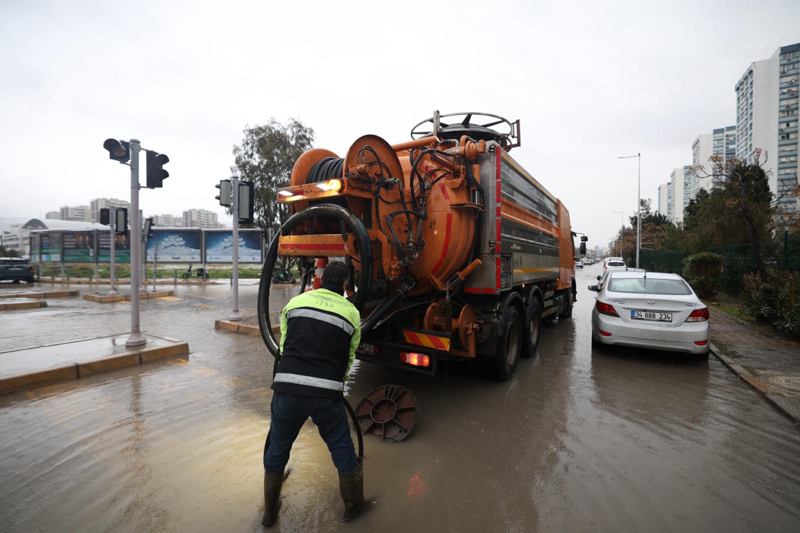 Meteoroloji Genel Müdürlüğü tarafından turuncu kodlu kuvvetli yağış uyarısı yapılan İzmir’de, gün boyunca etkili olan sağanak yağışlar nedeniyle Büyükşehir Belediyesi tüm birimleriyle teyakkuz halinde sahaya çıktı. Kent genelinde yol ve kavşaklarda su birikmeleri ile ev ve iş yerlerine yönelik su baskını ihbarları alınırken, ekipler ihbarlara eş zamanlı müdahale etti. Yağışların ardından merkez ilçelerde derelerin akışı normale dönerken, ulaşım güvenliği ve altyapının korunması için çalışmalar aralıksız sürdürüldü.