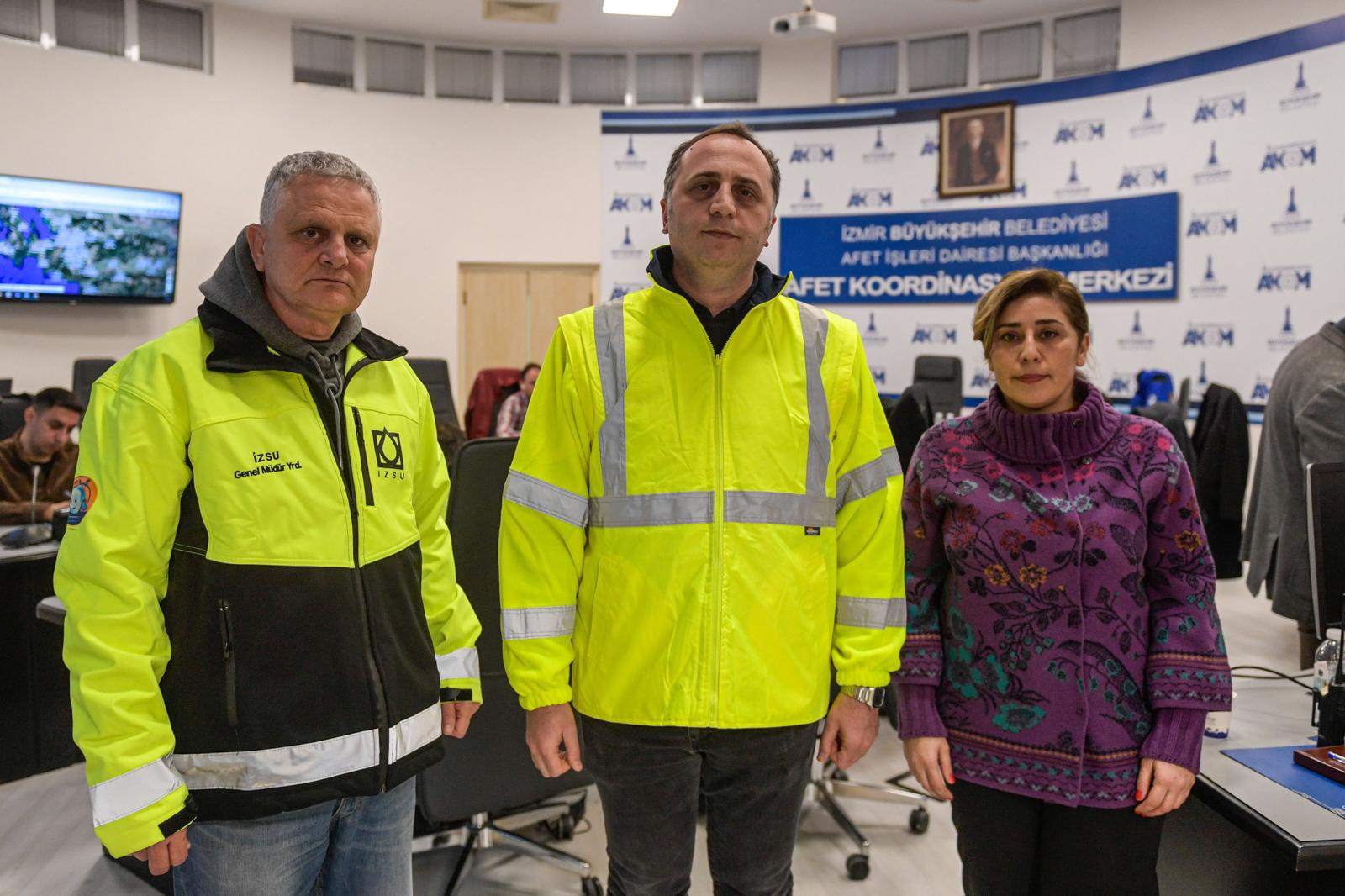 İzmir için verilen turuncu alarm nedeniyle İzmir Büyükşehir Belediyesi tarafından Afet Koordinasyon Merkezi Şube Müdürlüğü’nde (AKOM) kriz masası kuruldu. Sahadan gelen verilerin düzenli toplantılarla değerlendirildiği kriz masasında İzmir Büyükşehir Belediyesi Genel Sekreter Yardımcısı Dr. Hakan Uzun, İZSU Genel Müdür Yardımcısı Onur Demirci, İzmir Büyükşehir Belediyesi Afet İşleri Dairesi Başkanı Eylem Ulutaş Ayatar, İzmir Büyükşehir Belediyesi İtfaiye Dairesi Başkanı Yaşar Korkmaz ve birimlerin yöneticileri ile temsilcileri yer aldı. Kriz masasında kentin dört bir yanından gelen ihbarlar ve bilgilerle sahadaki ekipler yönlendirildi, her türlü kötü senaryo karşısında önlemler alındı.