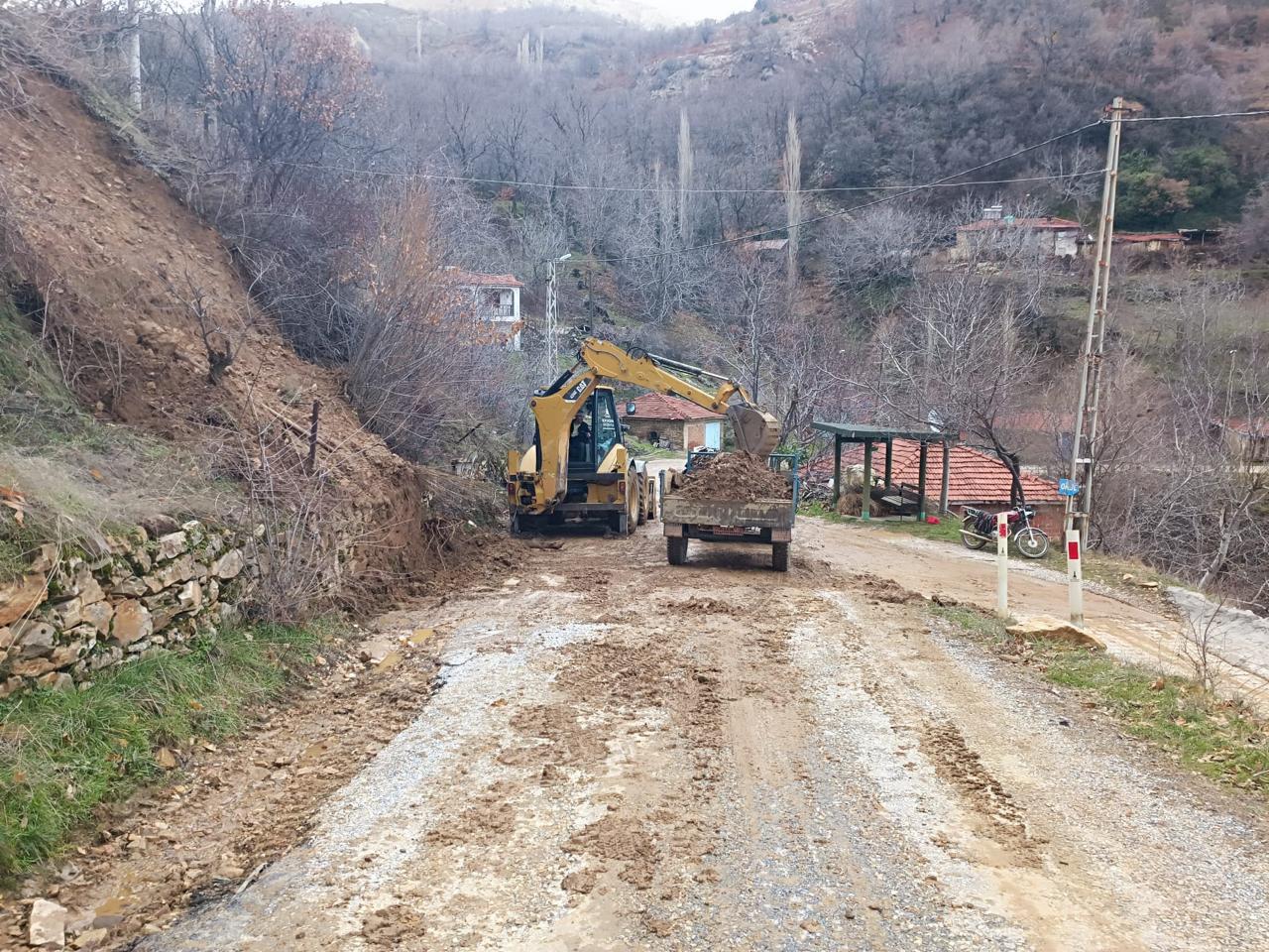 •Ödemiş Yılanlı Mahallesi’nde aşırı yağışların neden olduğu toprak kayması temizlenerek yol ulaşıma açıldı.