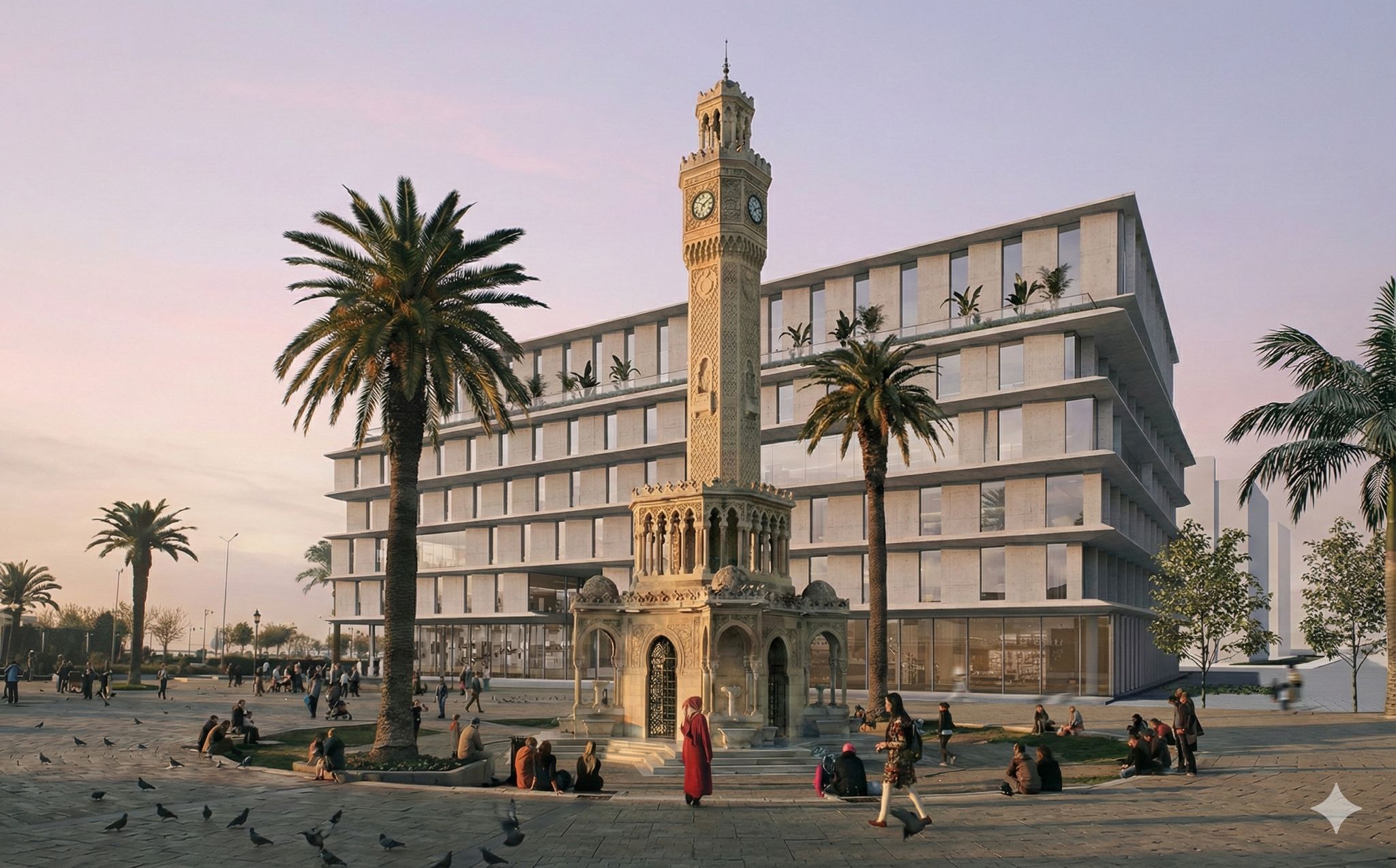 Faaliyette olduğu dönemde kentin simge mekânları arasında yer alan yapının, yıkıldığı noktada yeniden inşa edilmesine karar verildi. Yeni bina; meydanın dokusuyla uyumlu, kamusal kullanıma açık bir anlayışla tasarlandı. Yerinde inşa edilecek proje için gerekli Çevre, Şehircilik ve İklim Değişikliği Bakanlığı ile İzmir 1 Numaralı Kültür Varlıklarını Koruma Kurulu onayları alınarak yapı ruhsatı düzenlendi. İzmir Büyükşehir Belediyesi’nin ana hizmet birimlerini yeniden Konak’ta bir araya getirecek yeni yapı, Saat Kulesi ve çevredeki anıtsal yapılarla uyumlu olacak şekilde konumlandırılırken, meydanın siluetini bozmayacak bir mimari anlayışın benimsenmesine özen gösterildi.