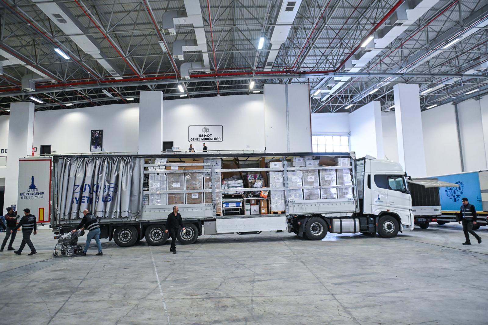 6 Şubat 2023’te yaşanan ve 11 ili etkileyen depremlerin ardından bölgeye destek sağlayan İzmir Büyükşehir Belediyesi, depremin üçüncü yıl dönümünde de depremzedeleri yalnız bırakmadı. “Unutmadık Yalnız Bırakmıyoruz’ mesajını Hatay halkına iletmek üzere harekete geçilirken, ayni destek malzemeleri bir TIR, iki kamyon ve iki panelvan araca yüklenerek Fuar İzmir’den yola çıktı. Eğitim, sağlık ve sosyal alanlardaki ihtiyaçları karşılamayı amaçlayan yardımlar afet bölgesine ulaştırılacak.