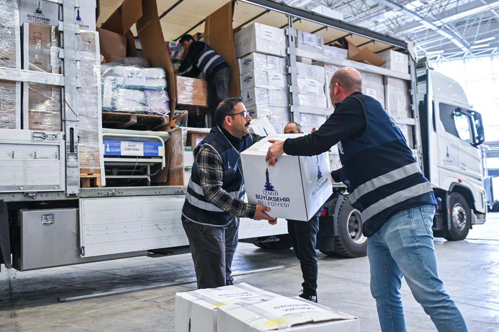 İzmir’den yola çıkan yardımlar; Samandağ Tekebaşı İlköğretim Okulu, Dursunlu Gazi İlkokulu ve Ortaokulu, Orhani İlkokulu, Tavla İlkokulu, Samandağ Üniversitesi-Kitap Kafe, Samandağ 1, 2 ve 5 No’lu Aile Sağlığı Merkezi (ASM), Defne Belediyesi-Ana Çocuk Oyun Merkezi, Dörtyol Belediyesi-Sosyal Destek, Samandağ Belediyesi, Erzin Belediyesi, Arsuz Belediyesi, Hatay Tabipler Odası ve Epilepsi Direnen Çocuklar Derneği’ne teslim edilecek.
