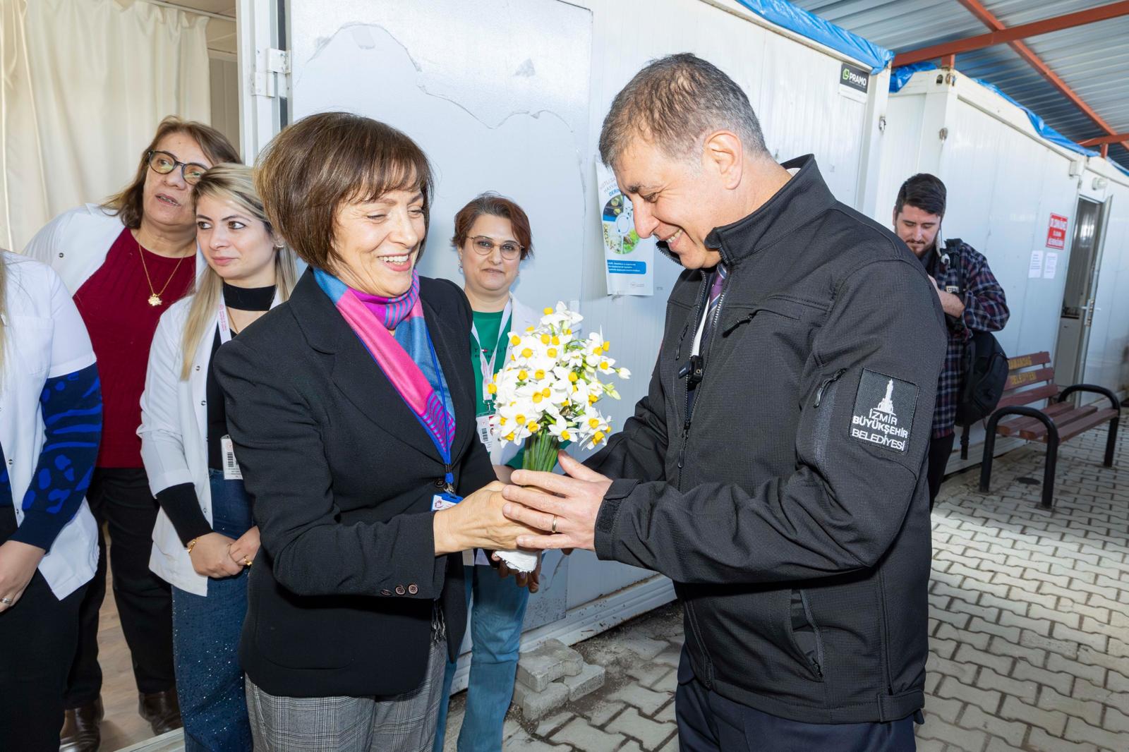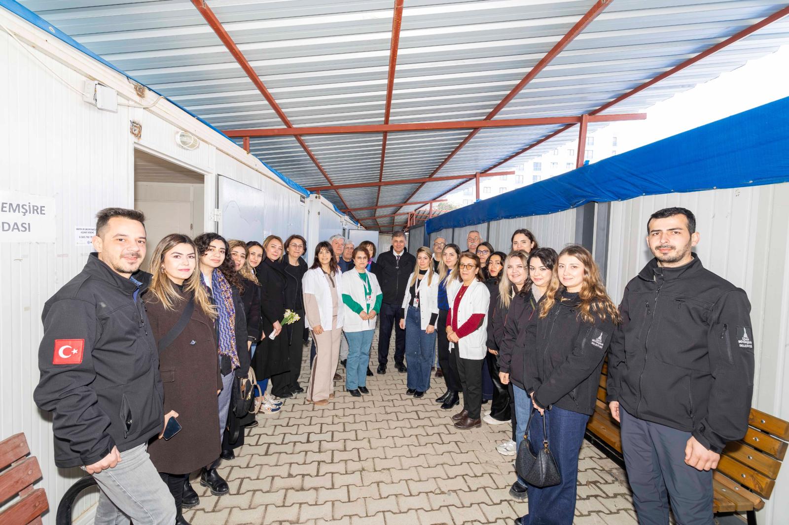 Dr. Cemil Tugay, tüm ihtiyaçları İzmir Büyükşehir Belediyesi tarafından karşılanan Samandağ 1 No'lu Aile Sağlığı Merkezi'ni de ziyaret etti. Sağlık emekçileri ile bir araya gelen Başkan Tugay, “Bundan sonra da bir şeye ihtiyacınız olursa, desteğe hazırız. Nisan ayında Hatay'da, kentin bütün ilçeleri ile yaşadığı sıkıntıları, mevcut durumu masaya yatıralım, konuşalım istiyoruz. Daha sonra görev dağılımı yapalım. Neticede doğru kararlarla bu çalışmaların yapılması daha sağlıklı sonuçlar doğurur. Bir ihtiyacınız olursa bilin ki biz elimizden geleni yapmaya hazırız” dedi. Sağlıkçılar da Başkan Tugay'a teşekkür etti.