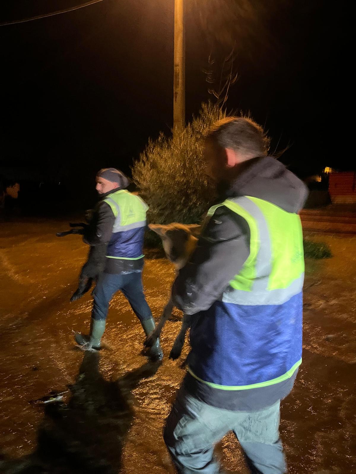 İzmir Büyükşehir Belediyesi İtfaiye Dairesi Başkanlığı ekipleri, Torbalı’nın Göllüce Mahallesi’nde sağanak yağış nedeniyle su basan bir ahırda mahsur kalan koyun ve tavukları kurtarmak için seferber oldu. Ekipler, dikkatli ve özverili bir şekilde hayvanları tahliye ederken, hayvanların yem ve su ihtiyaçlarını da karşıladı. Bir itfaiye erinin koyunları elleriyle beslemesi, bu zorlu koşullarda bile insan ve hayvan arasında güçlü bir bağın varlığını gösterdi. Aynı zamanda, bölgedeki suyun tahliyesi için su çekme çalışmaları da aralıksız sürdürüldü.