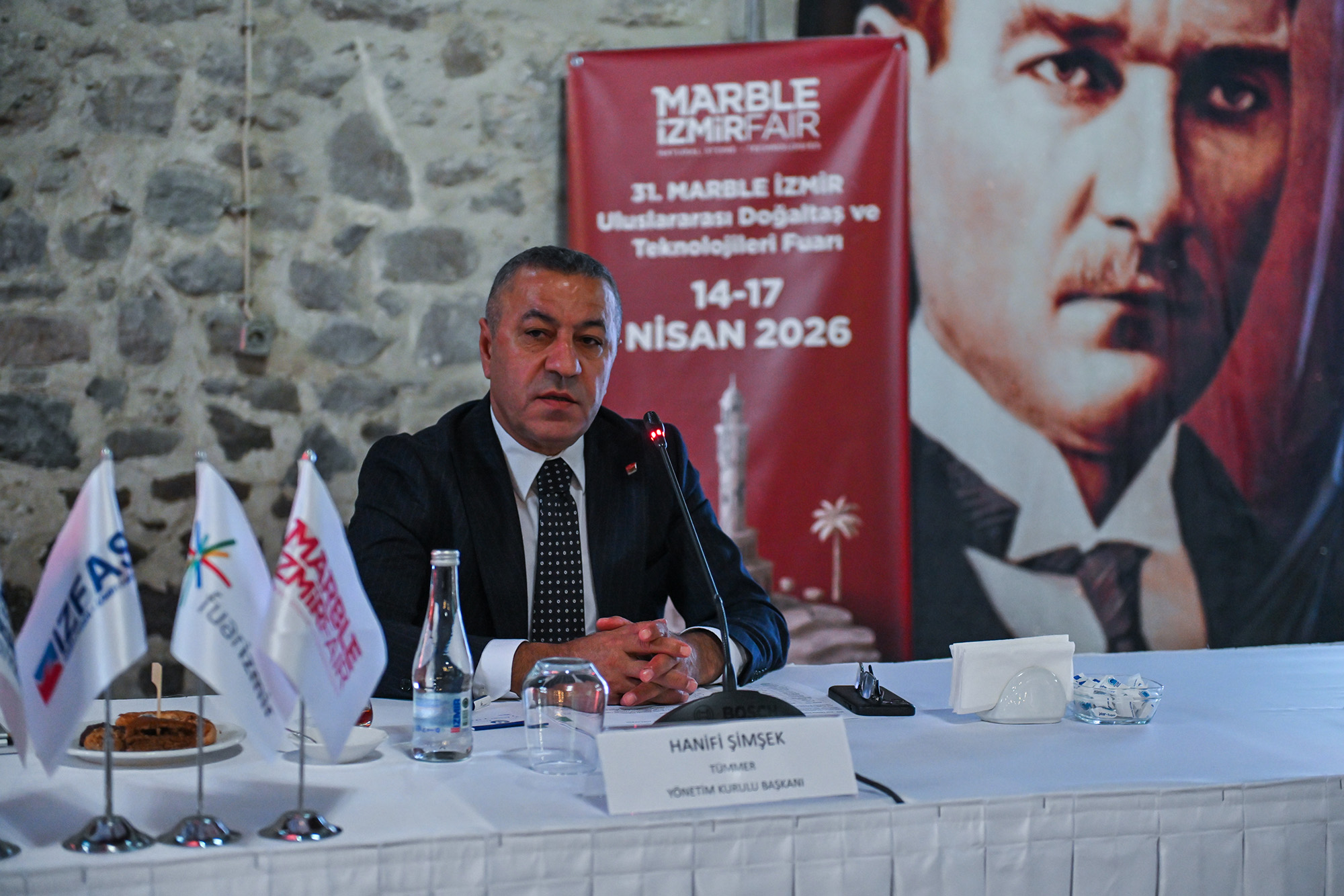 TÜMMER Yönetim Kurulu Başkanı Hanifi Şimşek, Marble İzmir’in sektörün tüm paydaşlarıyla birlikte ele alınması gereken bir organizasyon olduğunu belirterek, fuarın başarısı için otelcilerden lokantacılara, taksicilerden ticaret odalarına kadar kentin tüm dinamiklerinin sürece dahil edilmesi gerektiğini söyledi. Herkesin fuara sahip çıkmasının önemine dikkat çeken Şimşek, fuarın 31 yıllık geçmişi ve öncesindeki Sevgi Yolu dönemiyle birlikte 36 yıla yayılan büyük bir emeğin ürünü olduğunu vurgulayarak, “Benim bugün üç yaşında bir torunum var, belki 30 yıl sonra gelip bu fuarda çalışacak. Bu nedenle Marble İzmir’i yalnızca bugünün değil, gelecek kuşakların da fuarı olarak görmeli ve hep birlikte büyütmeliyiz. Bu fuar bir kişinin değil, hepimizin ortak değeri ve dünyada ilk üçte yer alan bir Türkiye markası. Bu birikimi koruyarak daha da büyütmek hepimizin sorumluluğu” dedi.