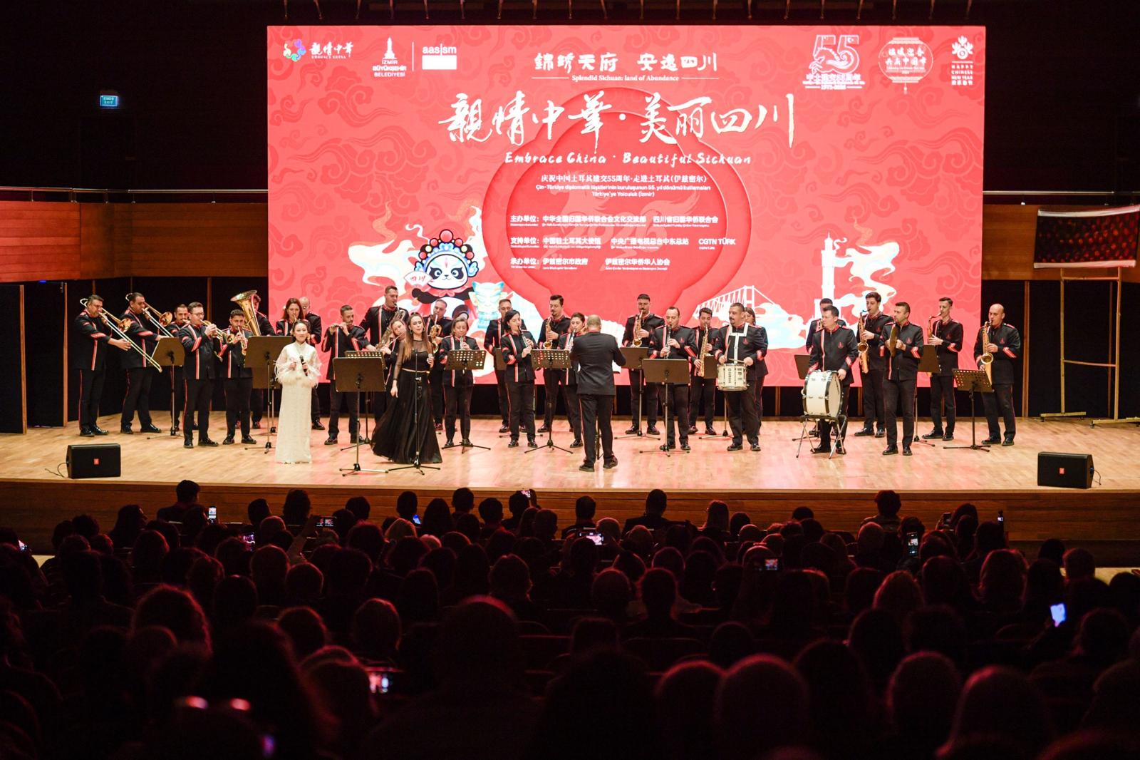 Konuşmaların ardından gece, İzmir Büyükşehir Belediyesi Bandosu'nun Çin’e Hoş Geldiniz şarkısıyla başladı. Etkinlikte; zeybek gösterisi, Hamdi Akatay darbuka performansı, Çin Operası "Dao Ma Dan", "Ne Güzel Bir Yasemin Çiçeği" şarkısı, çay sanatı, pipa eşliğinde su kollu gösteri, sahne sihri, Büyük Kukla Gösterisi "Kitap Sanatı", kısa sahne oyunu "İnsanlık Ne Güzel" ve Sichuan Operası Maske Gösterisi sergilendi. Gece, salondakilerin hep bir ağızdan söylediği "Hayat bayram olsa" şarkısıyla son buldu.